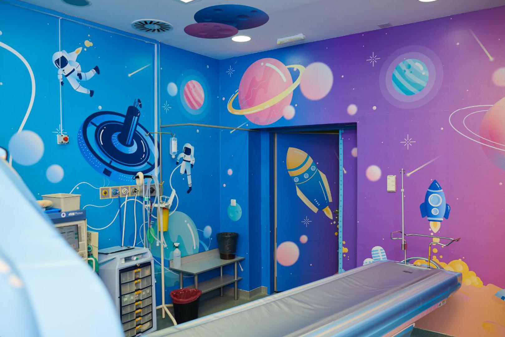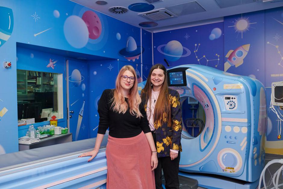 Liječnici i medicinsko osoblje bolnice svaki atom svoje energije fokusiraju na to da svojim malim pacijentima boravak u bolnici učine što manje traumatičnima. Neki pregledi, poput magnetske rezonancije i CT-a, iako bezbolni, mališanima su zastrašujući i teški zbog velikih, sivih uređaja kojima se zahvati provode. U Klaićevoj bolnici zato su ranije ove godine, uz pomoć agencije Izone, oslikali uređaj za magnetsku rezonanciju u simpatičnu podmornicu. Novi je projekt bio oslikavanje prostorije i uređaja za CT tako da nalikuje na svemirsku letjelicu.