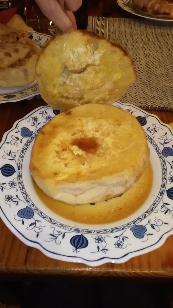 "Krije" jedno jaje i dvije žlice starog kajmaka, a iako nema mesa, prelivena umakom od pečenja, čini "komplet".