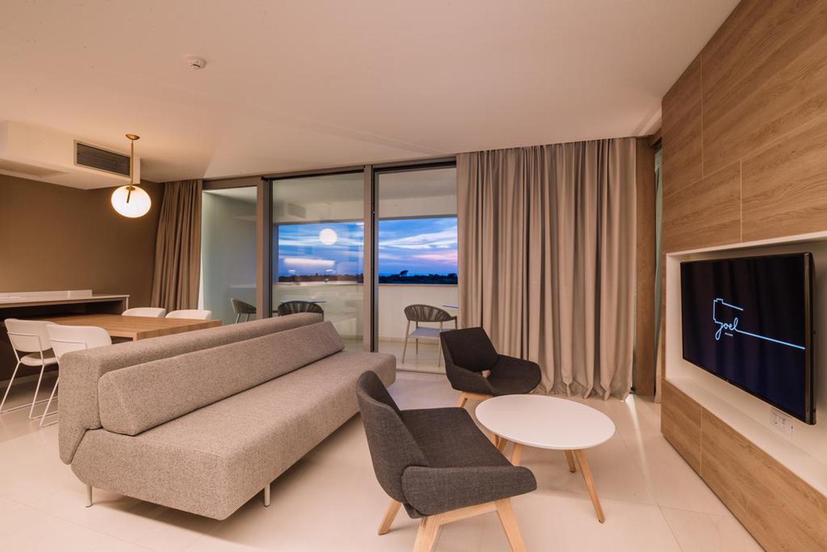 Hotel se sastoji od 11 jednosobnih, 2 studio, 1 deluxe apartmana i 2 depandanse. Apartmani su prostrani, s velikim prozorima i pogledom na more.