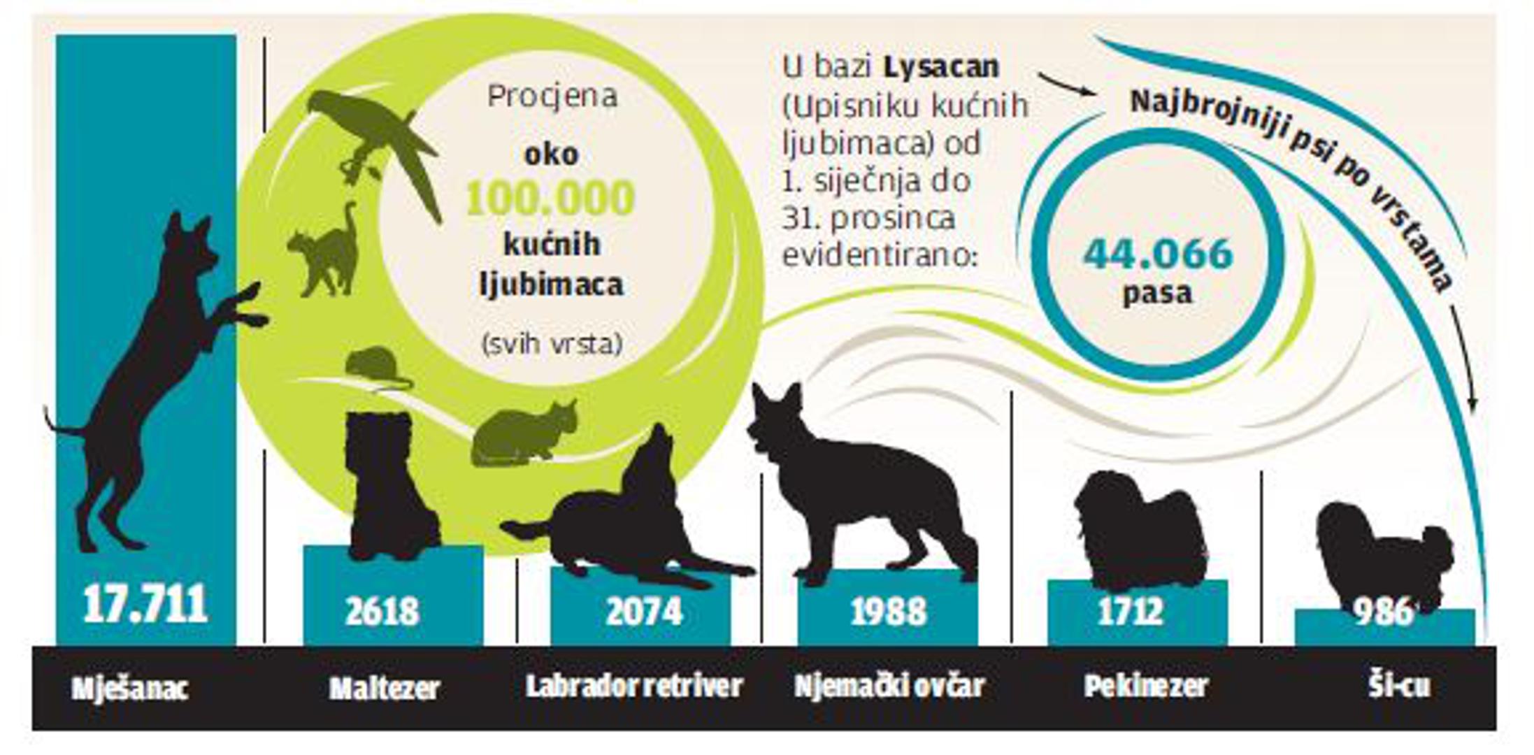 Najbrojniji su im sustanari psi. Potvrđuju to svi od kojih smo pokušali doznati koliko ih ima, no podaci se razlikuju. Prema Ministarstvu poljoprivrede, u Zagrebu je u Upisniku kućnih ljubimaca, bazi Lysacan, 44.066 označenih pasa. I baš ovo označenih, napominju volonteri koji se bave zaštitom životinja, znači da nisu uključeni i nečipirani psi. Bez obzira na zakonsku obvezu, ima ih i u Zagrebu. Koliko ih je, u Ministarstvu ne znaju, a prema udrugama u Zagrebu je barem 10.000 pasa više.