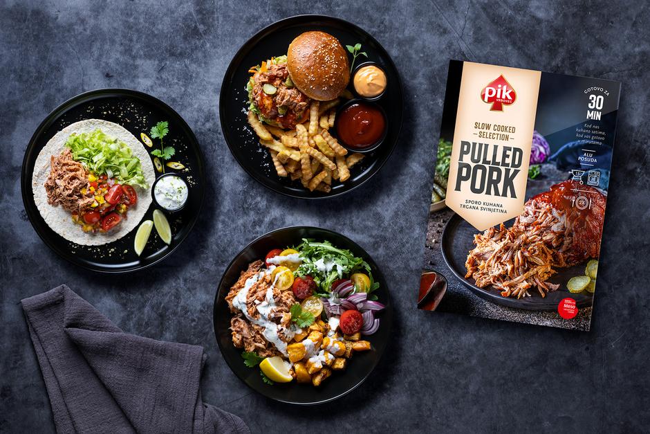 PULLED PORK, točnije trgana svinjetina je napravljena od mesa s hrvatskih farmi. Prilikom proizvodnje kuha se šest sati, a porcija za dvije osobe je gotova za pola sata u pećnici ili samo 15 minuta ako se priprema na roštilju. Idealno ju je poslužiti u pecivu ili tortilji, a može se jesti i klasično sa prilogom.