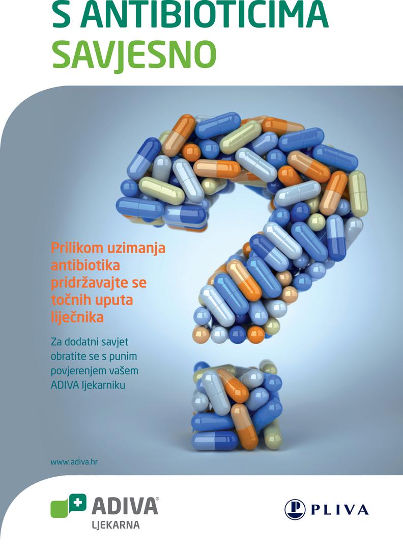 S ciljem savjetovanja građana o važnosti pravilnog uzimanja antibiotika, u ADIVA ljekarnama diljem Hrvatske provodi se do 8. svibnja savjetodavna kampanja „S antibioticima savjesno“. ADIVA ljekarne prepoznatljivo su označene, a na vratima ili u izlogu ljekarne istaknut je i plakat kampanje „S antibioticima savjesno“.