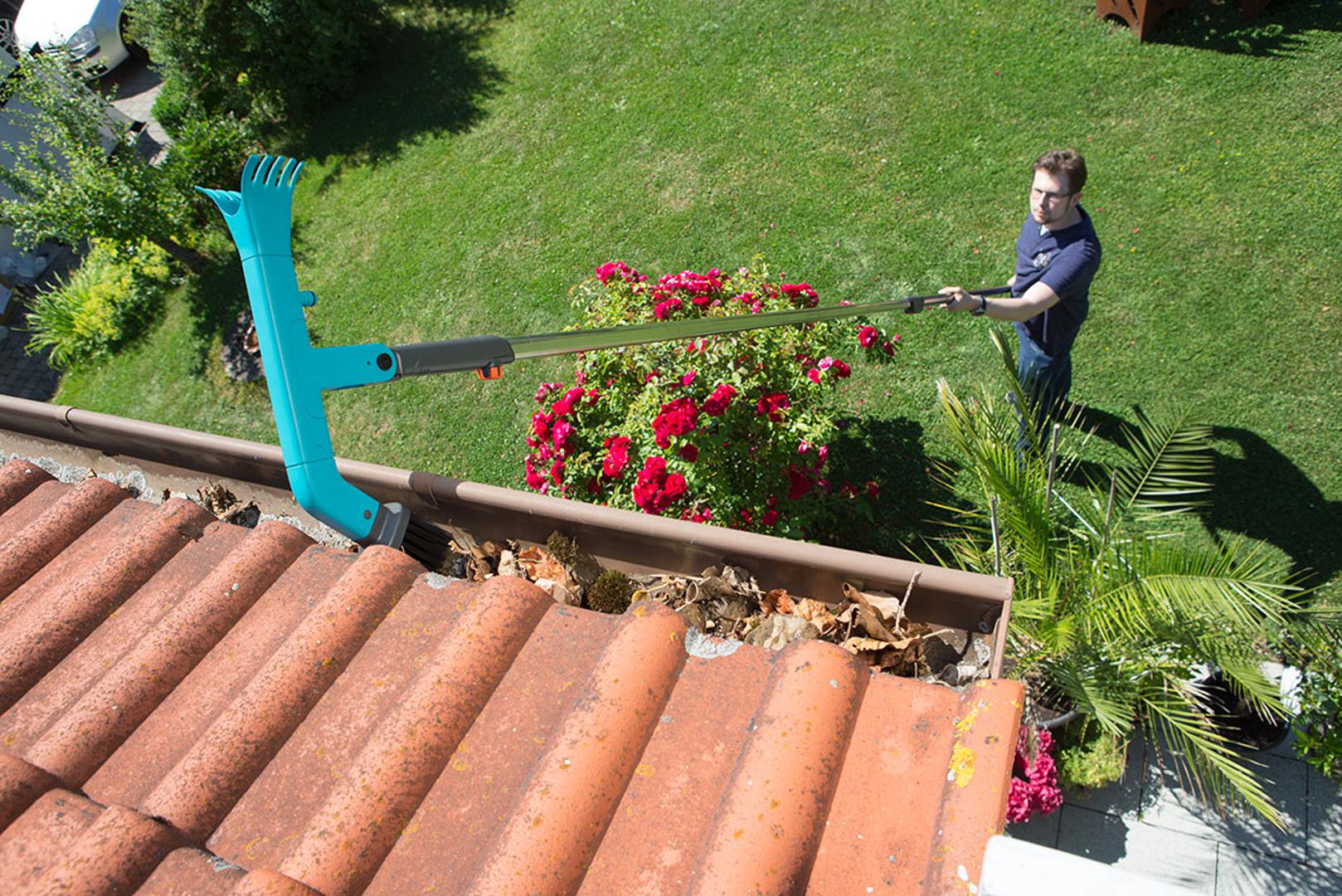 Prije nego što vaš vrt zaista zaživi i terasa opet bude pogodna za toplije mjesece, morate obaviti još nekoliko zadataka. Krovni odljevi prekriveni mahovinom, preplavljuju lišće i druge ostatke na vašoj terasi, a mogu čak oštetiti krov i fasadu. Čišćenje na visini može biti opasno, pa je zato GARDENA combisystem Čistač žljebova s integriranim priključkom za vodu iznimno koristan. Uklonite nakupljene ostatke iz žlijeba na siguran i prikladan način s poda.
