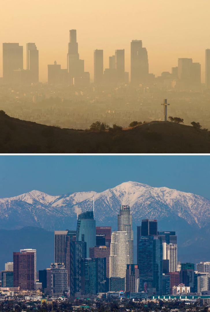 Los Angeles u Kaliforniji poznat je po nenormalnim gužvama i smogu, ali fotografija koja je okinuta 14. travnja pokazuje koliko se zrak očistio kada nema toliko aviona i auta.