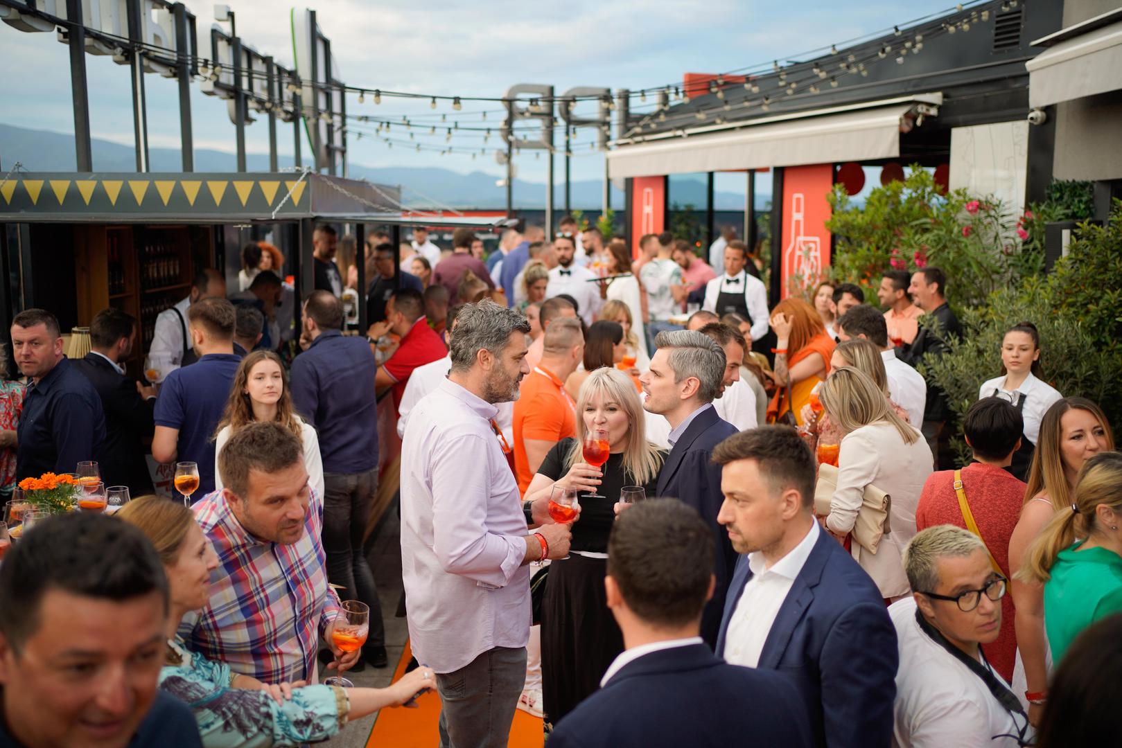 Join the joy – slogan je koji poziva na vedrinu, radost i uživanje u svim blagodatima ljeta s najdražim ljudima. Neodoljiva lakoća postojanja, po kojoj su Talijani poznati, osjetila se i na zabavi upriličenoj u čast najpoznatijeg zavodnika iz Venecije. Za savršen narančasti doživljaj potreban je prosecco, poznati slatko-gorki liker iz Venecije,  mineralna voda, u omjeru 3/2/1, posluženi u vinskoj čaši punoj leda – znaju Talijani kako uživati. Uz sve navedeno, savršeno su se sljubili ukusni zalogajčići poput raznih vrsta sira i pršuta, brusketa, maslina i sušenih rajčica, a koji dočaravaju gastro kulturu sjeveroistočne Italije, u kojoj ovaj koktel uživa kultni status. Ambijent rooftopa dodatno je upotpunio ideju savršene ljetne večeri. Vaze s narančama, mirišljavo cvijeće, narančasta boja i bršljan te pregršt mediteranskog bilja doprinijeli su dolce vita osjećaju. Uz vesele taktove glazbe, zaokružena je čitava Join the Joy priča, a narančasti heroj večeri nije nikoga ostavio ravnodušnim.