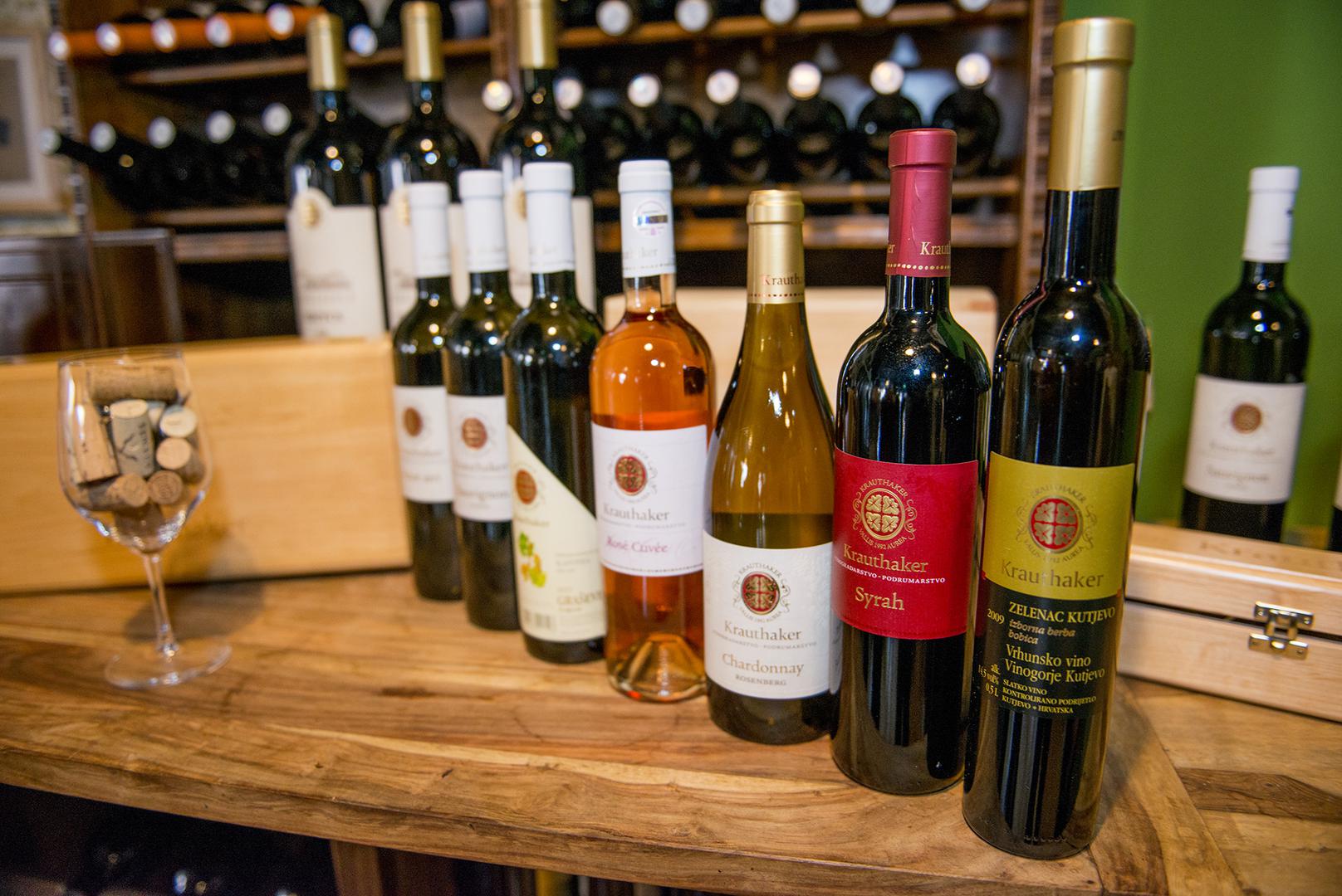 Krauthaker jedini u Hrvatskoj radi vino od sorte zelenac, a u svojim kutjevačkim vinogradima inače ima 25 etiketa vina različitih sorti