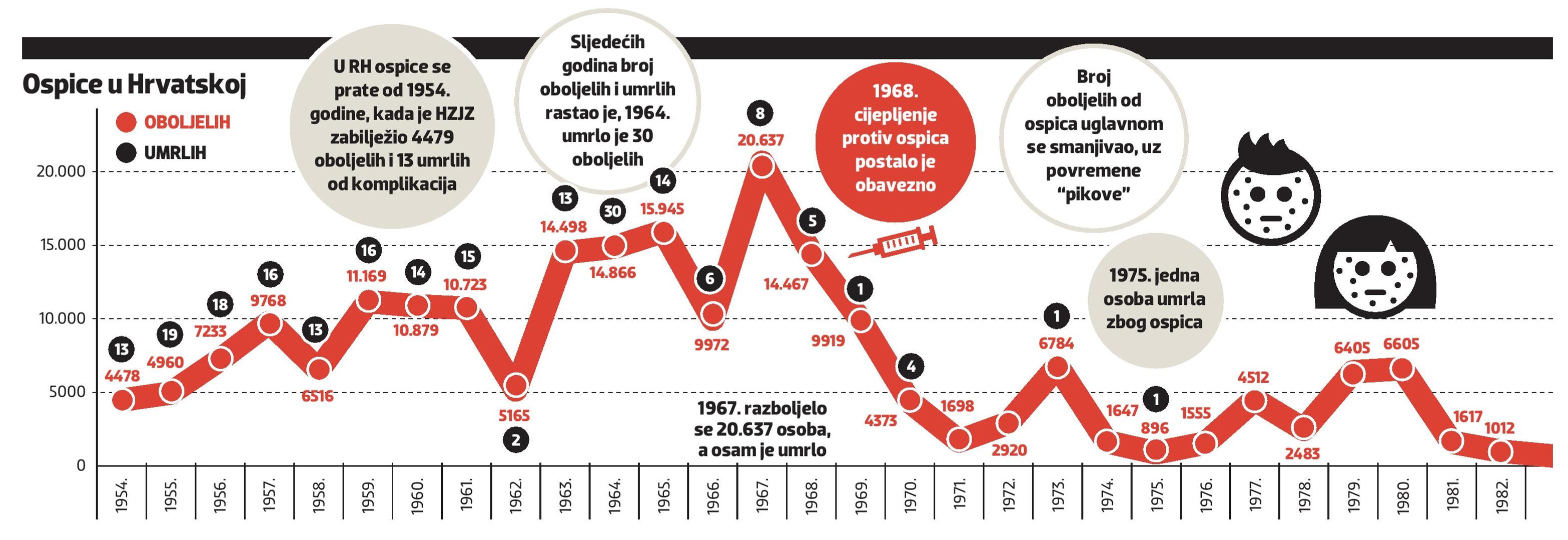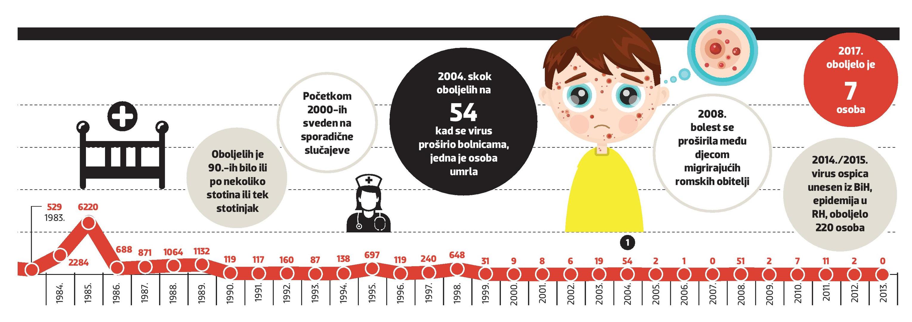 O ospicama se desetljećima nije gotovo ništa čulo jer su, zahvaljujući vrlo učinkovitom cjepivu i visokoj procijepljenosti među stanovništvom, one prestale biti opasnost za javno zdravlje. Međutim, u posljednjih nekoliko godine u Hrvatskoj, ali i svim europskim zemljama, bolest se počela munjevito širiti. Lani je u Europi od ospica umrlo 35-ero ljudi, jer se broj oboljelih povećao četiri puta. Europski ured Svjetske zdravstvene organizacije zabilježio je 2017. 21.315 slučajeva oboljelih, a godinu dana prije 5273.