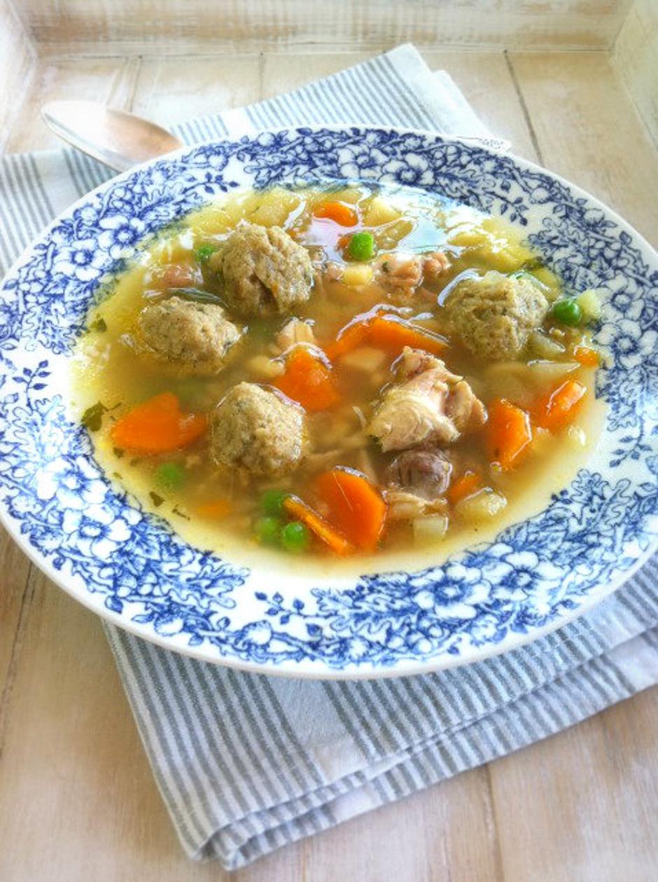 Na malo masnoće propirjajte sitno narezani luk, dodajte meso (komade koje volite) pa pirjajte nekoliko minuta, povremeno miješajući. Korjenasto povrće narežite na kolutiće ili na sitnije komadiće, dodajte u lonac prvo narezanu mrkvu i peršin, a nakon par minuta i ostalo povrće. Sve zajedno pirjajte desetak minuta (možete dodati malo brašna ako želite da juha bude gušća, ja ne dodajem). Prelijte vodom, posolite, poklopite i ostavite da zakuha. Kada juha zakuha, vatru smanjite i na laganoj vatri kuhajte oko sat i pol. U juhu dodajte pripremljene jetrene okruglice i kuhajte još 10 minuta. Prije posluživanja dodajte sitno nasjeckani peršinov list.
