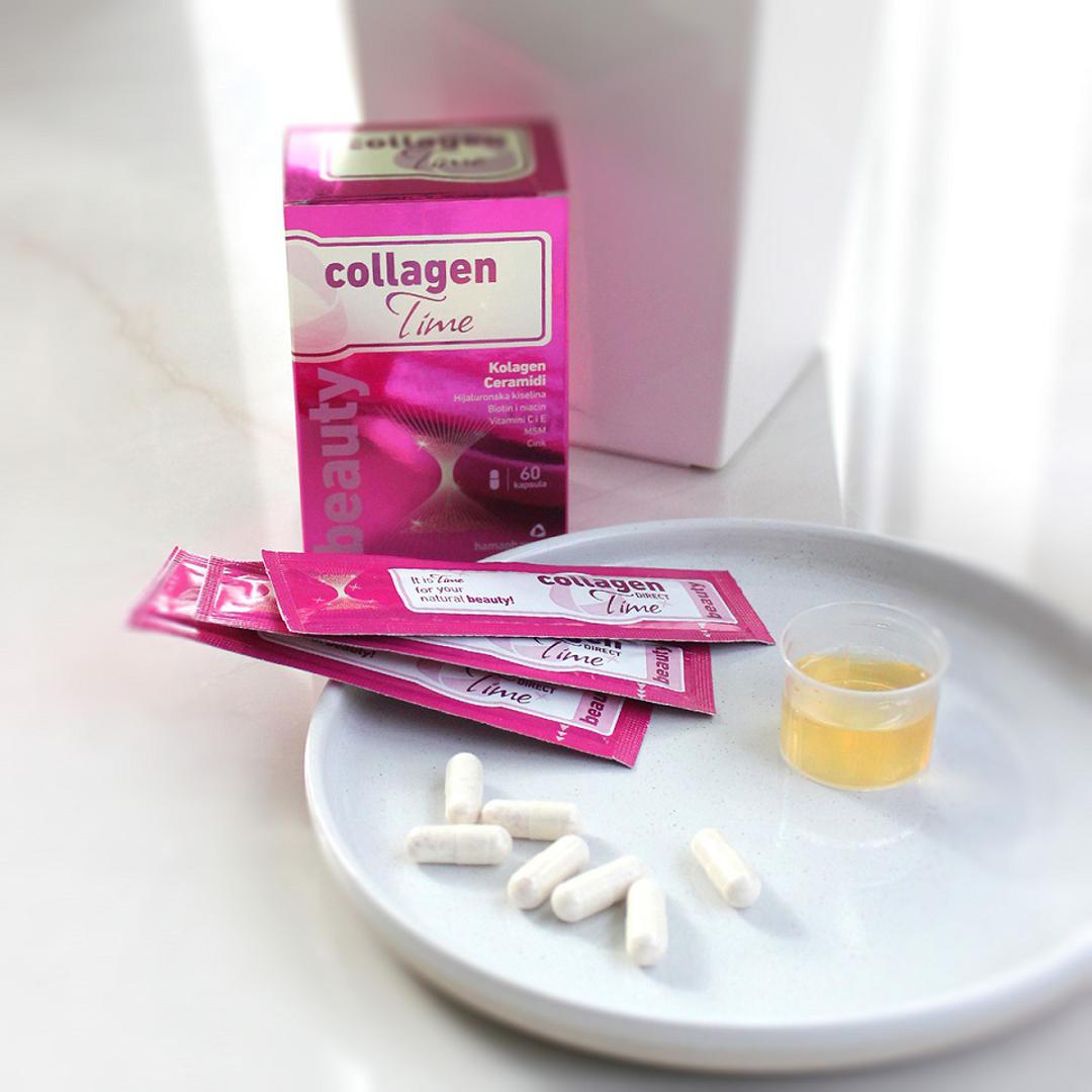 Beauty linija proizvoda namijenjena je ljepoti kože i anti-aging -u s najbržim rezultatima već nakon 15 dana zahvaljujući ribljem kolagenu, ceramidima i specifičnom djelovanju na dva nivoa kože. Osim kolagena CollagenTime Beauty linija sadrži MSM, hijaluronsku kiselinu, vitamine i cink, a zaglađuje bore i fine linije, povećava elastičnost kože i hidrataciju, poboljšava čvrstoću i rast kose i noktiju te podržava zdravlje zglobova, mišića, ligamenata i kostiju. Dolazi u tri oblika – u obliku tekućine, kapsula i direktnog oblika. Znamo kako samo dugoročnom i svakodnevnom konzumacijom možemo postići one najbolje rezultate i mjerljive promjene, ali prve rezultate i zdravi sjaj kože primijetiti već nakon 2 tjedna dovoljno je za bolji početak dana i osjećaj samopouzdanja.