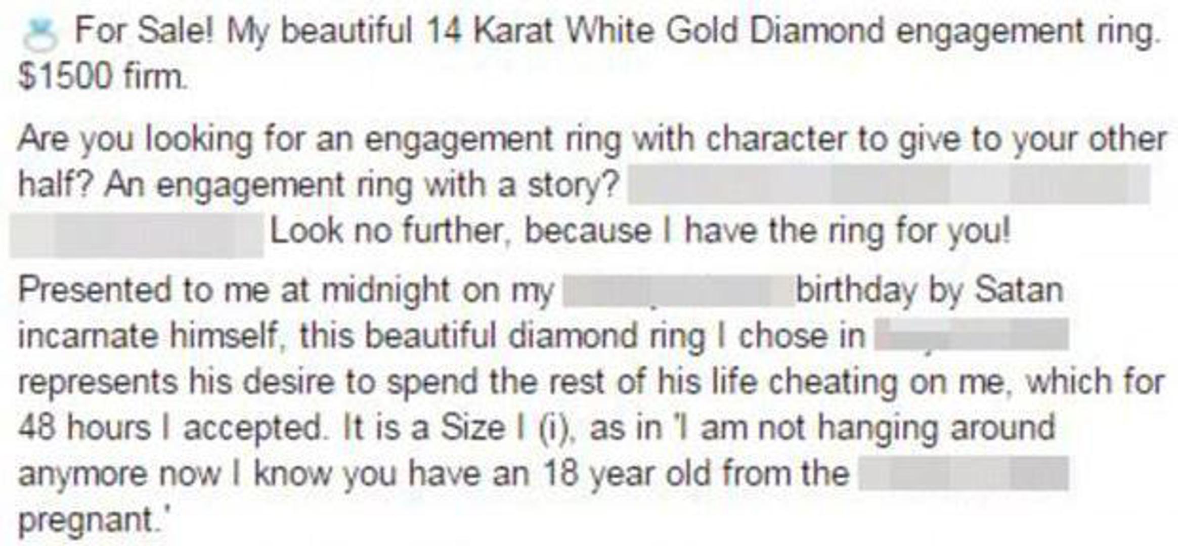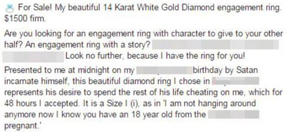 Bijesna Australka ostavila je nesvakidašnji oglas u kojem prodaje svoj zaručnički prsten.