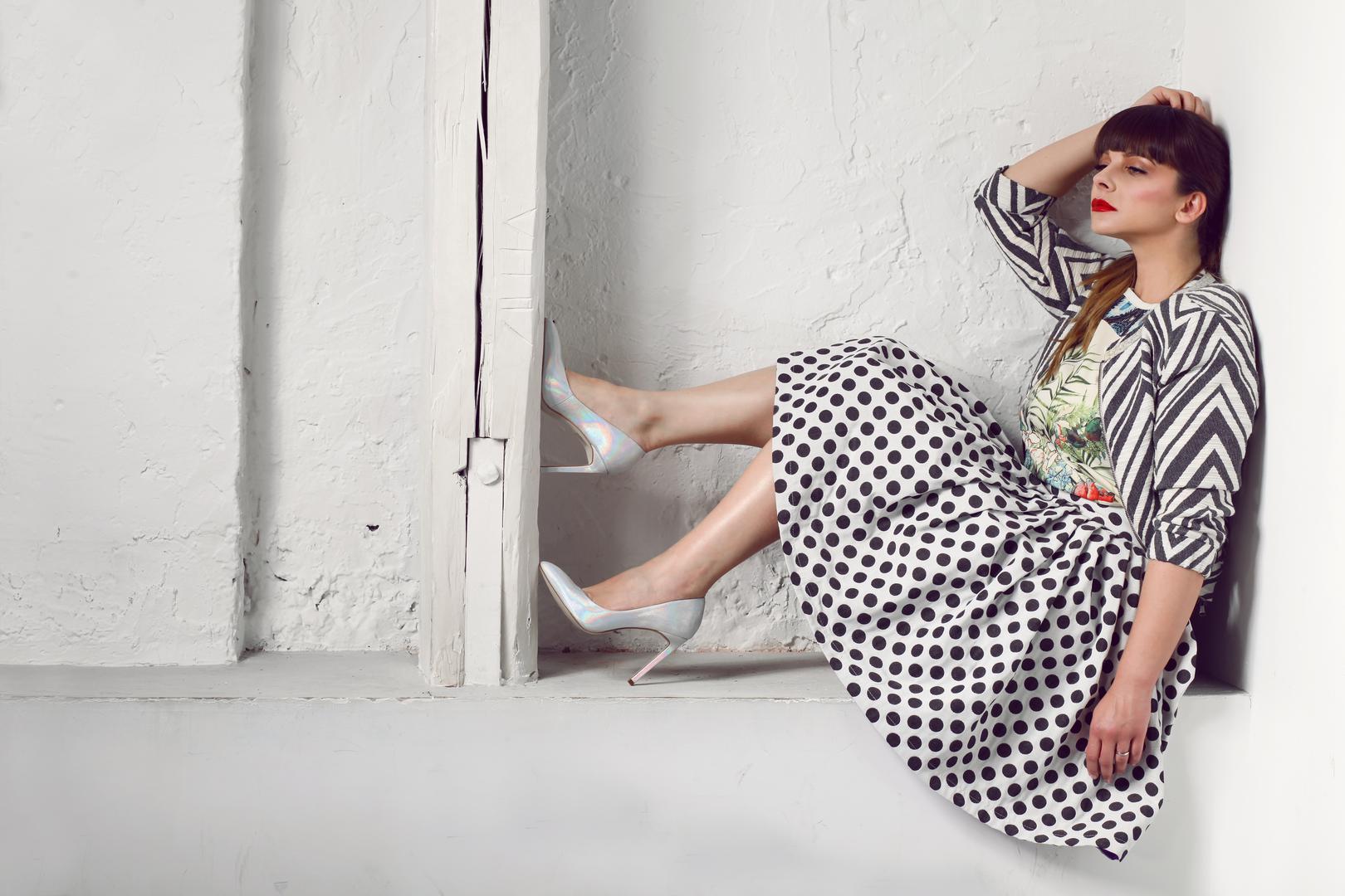Majica - privatno vlasništvo, suknja Iggy - 450 kn, sako Sisley - 819 kn, cipele Aldo -599 kn