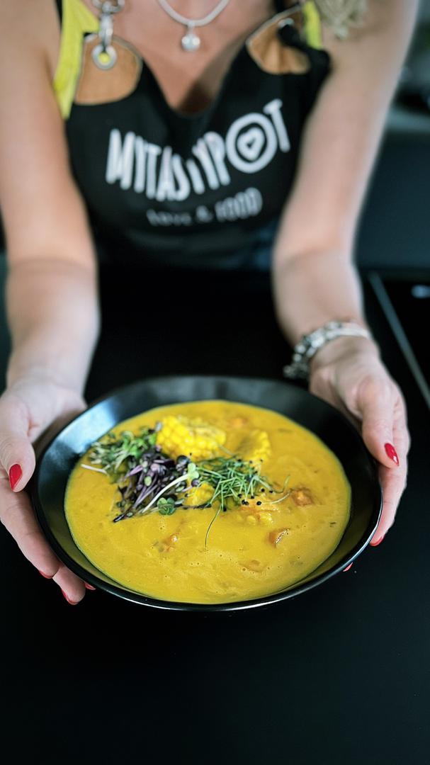 Danas vam predlažemo jednu pomalo neobičnu gustu juhu, prije svega zbog gomile povrća i začina koji idu u recept. Sve je dodatno obogaćeno finim krem-sirom zbog kojeg je juha dobila tu finu strukturu i postala kremastija i ukusnija. Sezona je bundeve tako da ona dominira, a sve ostalo povrće je samo dodatni bonus ovom zdravom i ukusno jelu za koje je zaslužna Tatjana Miletić s bloga MyTastyPot.