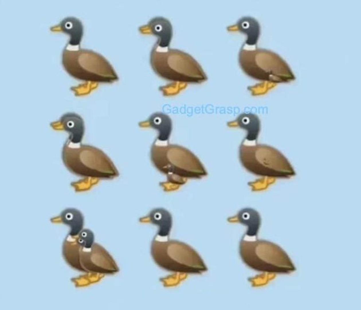 Isprva se čini da slika sadrži male patke raspoređene na način tri puta tri. Kao i kod većine zagonetki, ova postavka namjerno dovodi u zabludu. Oni koji skeniraju sliku brzo dolaze do (netočnog) odgovora devet. Samo će najpozorniji od zagonetača uočiti koliko ima pataka.