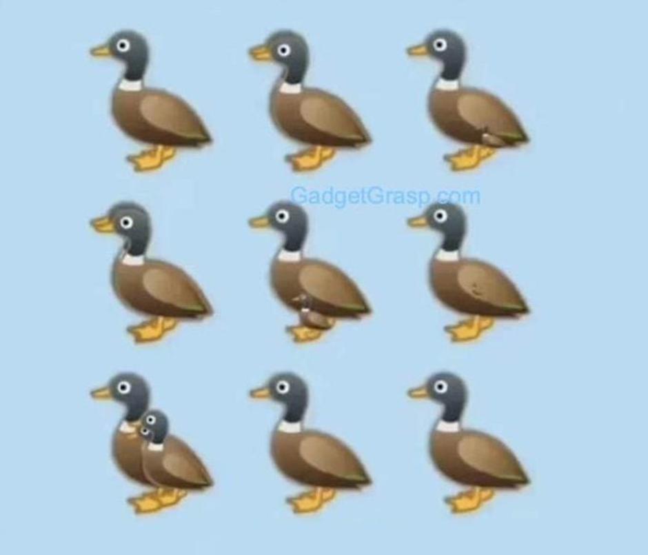 Šesta ikona patke je za raspravu. Neki vide samo jednu patku. Drugi primjećuju oznaku na krilu koja se ne pojavljuje ni na jednoj drugoj ikoni i tumače to kao dodatnu patku. Računat ćemo je kao sličicu s dvije patke, jer ovo vodi do najprihvaćenijeg odgovora. U posljednjem redu imamo tri patke u sedmoj sličici. (Dodatne dvije prilično je lako uočiti.) A svaka od posljednje dvije sličice sadrži samo jednu patku. Dakle, sada smo došli do 16 (ili 15, ako ne računate navodnu drugu patku u šestoj sličici). I eto ga: 16 pataka.