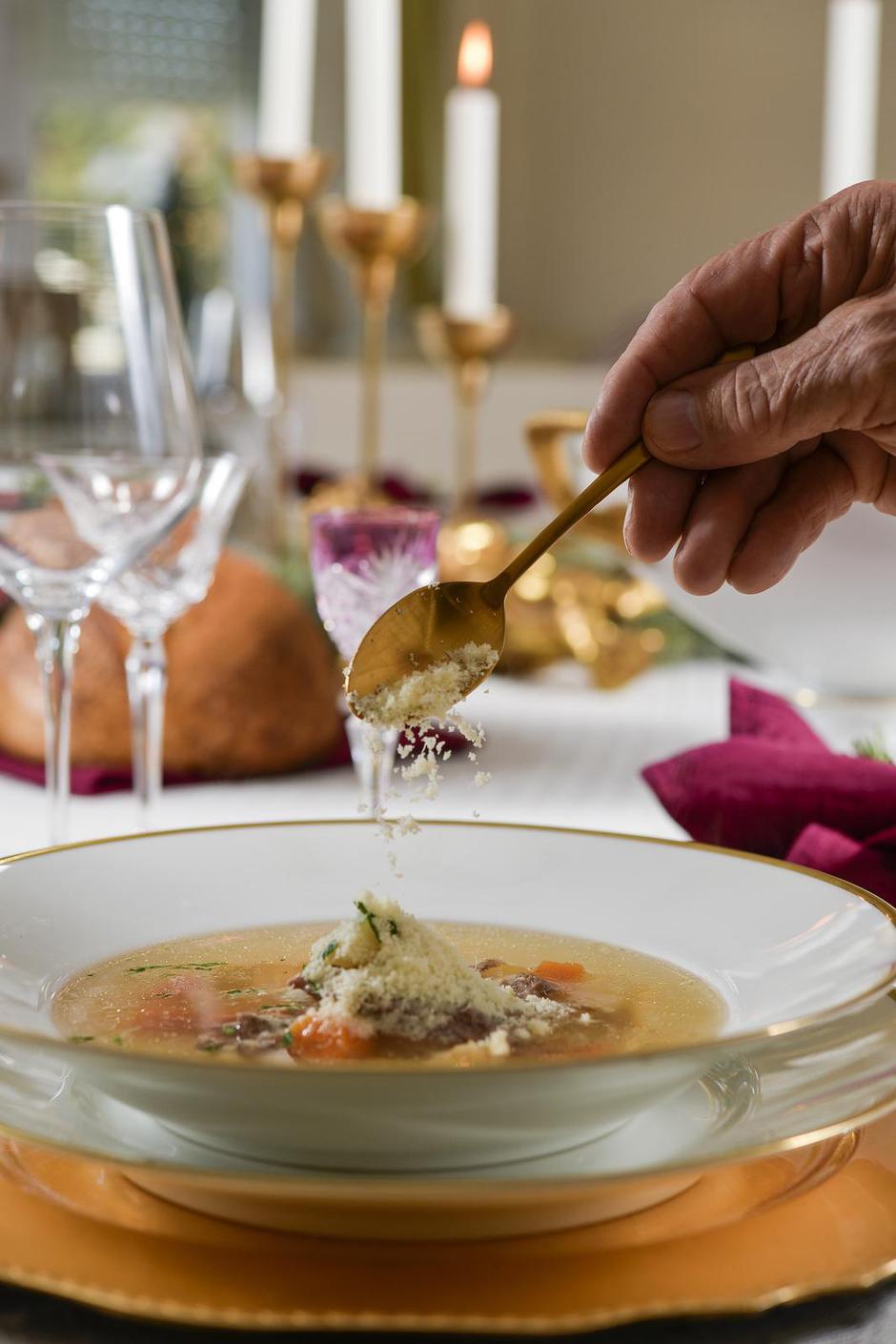 Patka s heljdom, punjena teleća prsa ili koljenica? I, naravno, juha! Na vama je teška odluka što odabrati za blagdanski ručak. Mi smo proveli dva dana s legendom hrvatske gastronomije, Stevom Karapandžom, i pripremili za vas detaljne recepte koje ćemo objavljivati kroz tjedan pred nama. Umjesto da budete u dilemi, možda biste ove godine na božićnom ručku mogli okupiti veliko društvo i poslužiti sve što vam predlažemo. Krećemo s raskošnom juhom od goveđeg repa koja u Karapandžinoj izvedbi ima dva neuobičajena sastojka.