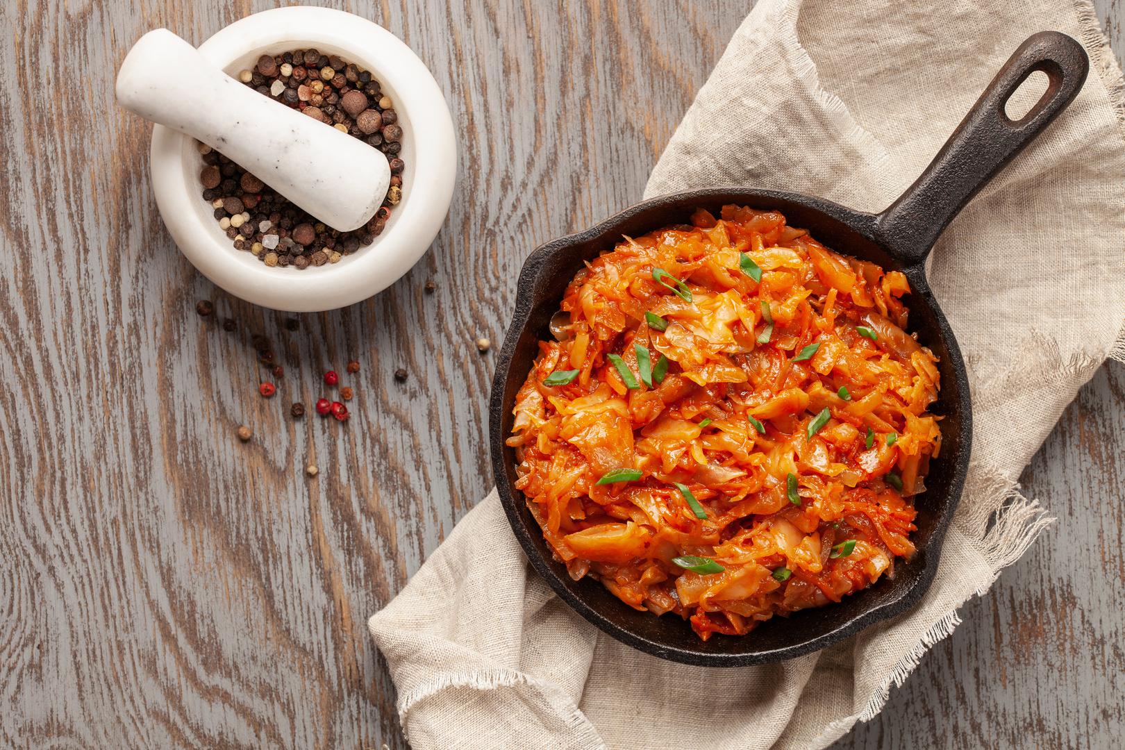 Za brzi i ukusni ručak koji spaja meso i povrće u jednom loncu, isprobajte kiseli kupus s komadićima svinjetine. Ovo jelo gotovo je za otprilike pola sata, a nudi bogatstvo okusa. Na mješavini ulja i maslaca najprije se poprži nasjeckani luk, a zatim mu se dodaju komadići svinjskog filea narezani na trakice ili kocke. Meso se kratko pirja sa svih strana da dobije boju.
