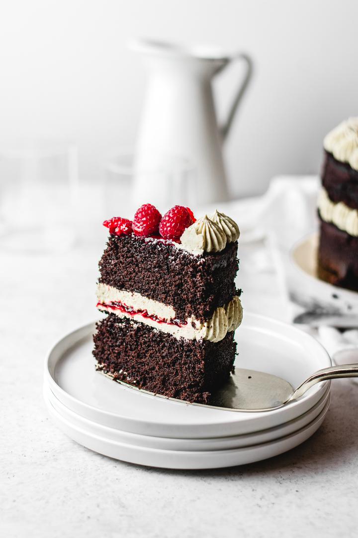 Tortu slažite na tanjuru za serviranje ili cake boardu. U sredinu stavite malo kreme kako bi se biskvit zalijepio. Za ljepši izgled, biskvitima poravnajte vrhove. Na prvi biskvit nanesite ravan sloj kreme. Koristeći slastičarsku vrećicu s nastavkom po izboru (ja sam koristila Wilton 6B), ukrasite rub koji služi kao ograda. Unutar toga nanesite sloj umaka od malina, prekrijte kremom pa stavite drugi biskvit na vrh. Ponovite postupak, ali ovaj put na sloj umaka posložite svježe maline.