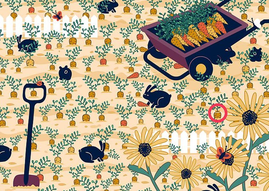 William May ispitali su 1000 sudionika koja su najčešća mjesta gdje su izgubili prstenje te su saznali da ih većina ljudi gubi tijekom vrtlarenja te na plaži. Ako se mučite s pronalaskom prstena na ovoj ilustraciji, pogledajte mrkvu koja raste s desne strane. Ako još uvijek ne možete pronaći zaručnički prsten, pogledajte rješenje: