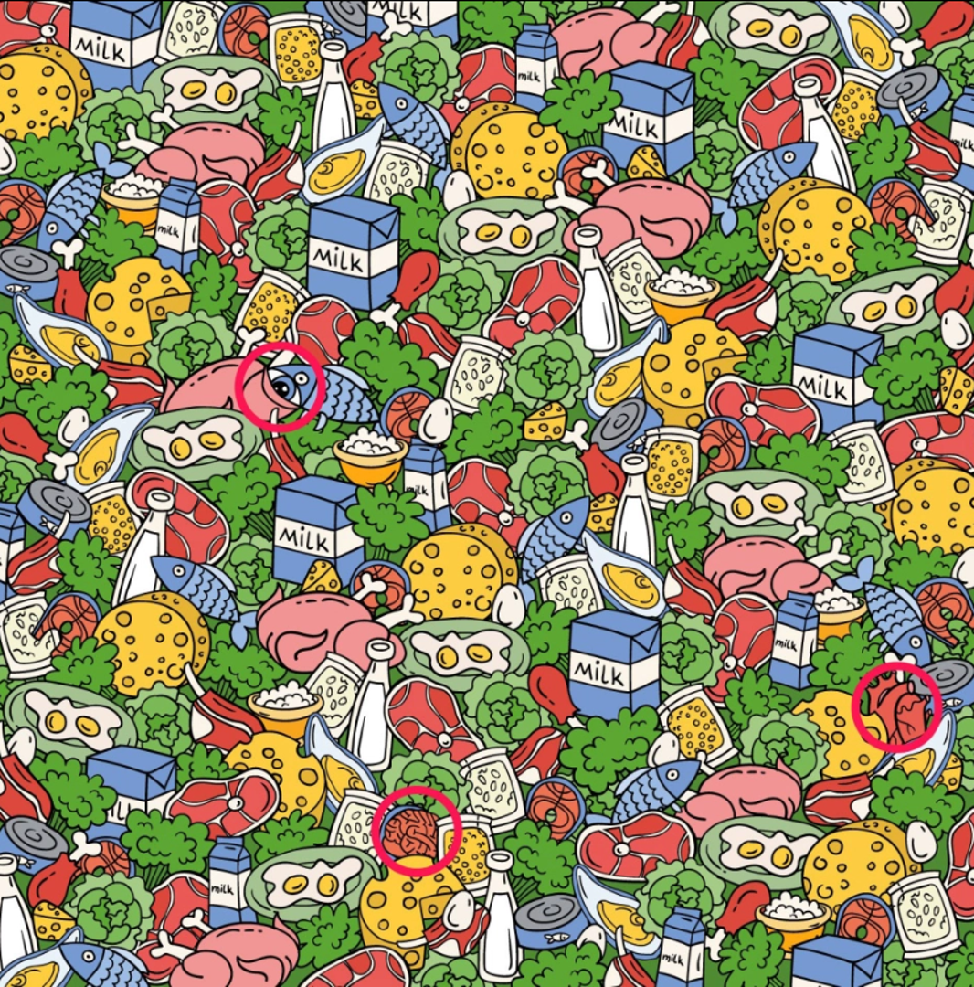 Zanimljiva mozgalica izaziva vas da pronađete srce, oko i mozak u šarenoj ilustraciji punoj hrane. Pronalazak rješenja može biti nezgodan jer su dijelovi tijela dobro skriveni među hranom bogatom vitaminima, kako prenosi The Sun.