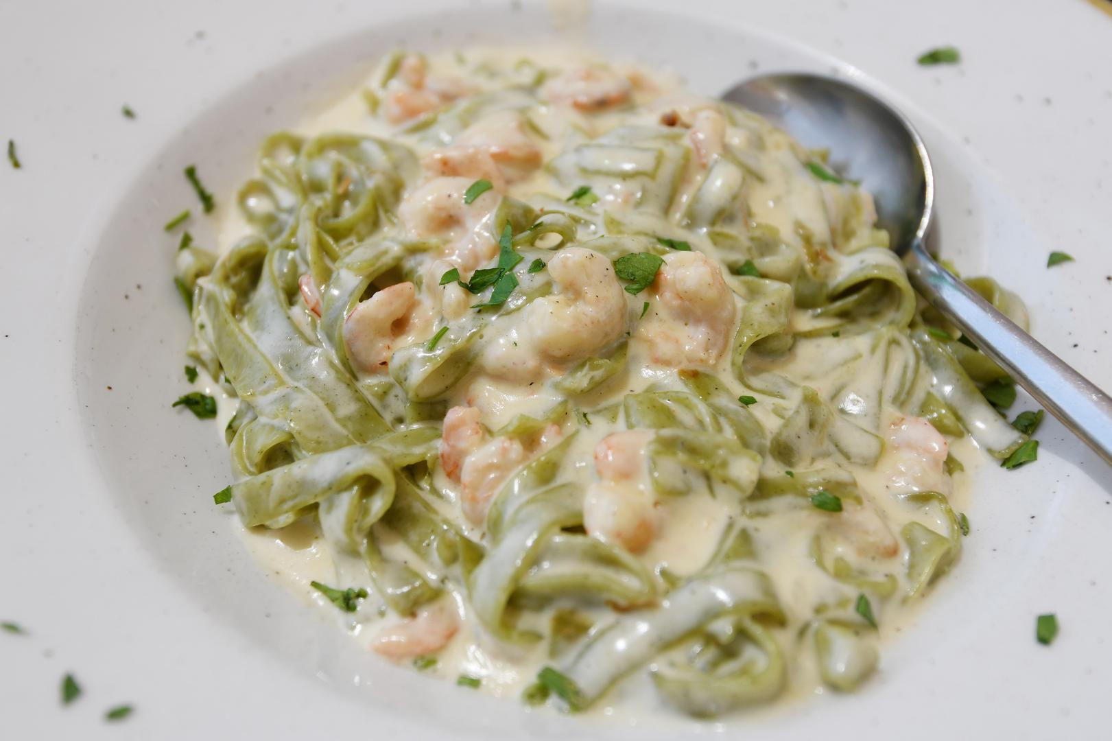 Odluka je pala na riblji meni, mada je i mesna ponuda vrlo dobra, opredijelili smo za lakšu, ljetnu 'spizu'. Kozice sa zelenim rezancima za 13 eura kao i špageti sa školjkama (vongole) za 12 eura, ukusni i izvrsno spravljeni od svježih morskih plodova došli su kao pravo osvježenje u ova sparna vremena.