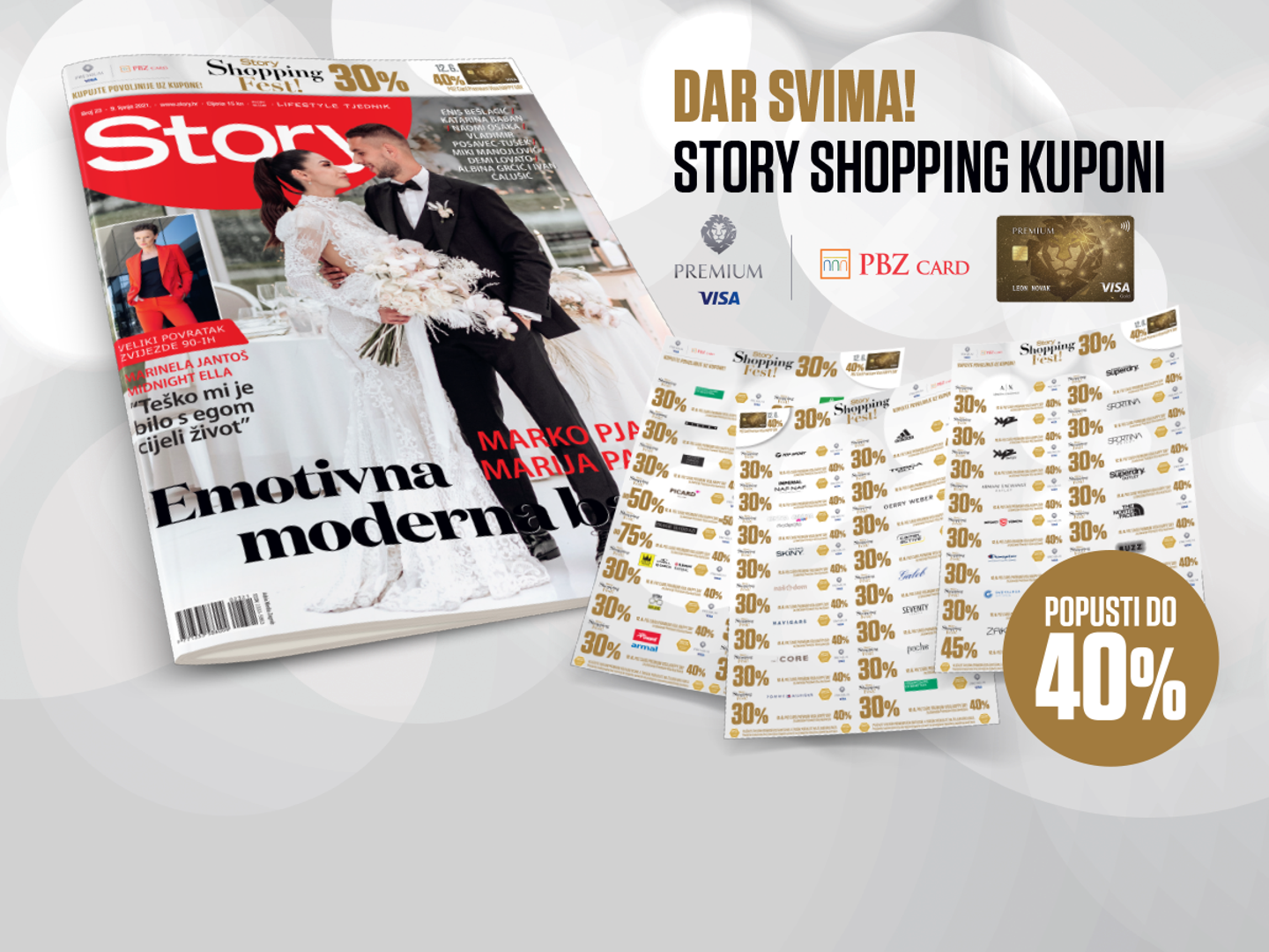 Ljetni Story Shopping Fest je stigao! Samo u časopisu Story od srijede, 9. lipnja, potražite shopping kupone i ostvarite popuste do čak 40% prilikom kupnje u preko 500 trgovina iz svijeta mode i ljepote, diljem Hrvatske.