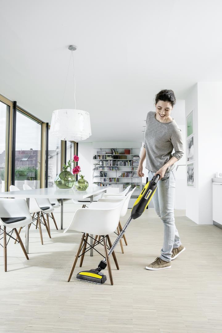 Prvi uređaj koji nam je zapeo za oko je bežični baterijski usisavač VC 5 – kompaktan model koji je prikladan za dubinsko čišćenje zahvaljujući visokoučinkovitom motoru, kao i preklopnoj Kärcher podnoj mlaznici. Ovaj uređaj pruža najbolje rezultate čišćenja na svim tvrdim podlogama i tepisima, a kao dodatnu prednost svakako ističemo filtarski sustav bez vrećice s integriranim čišćenjem filtera.