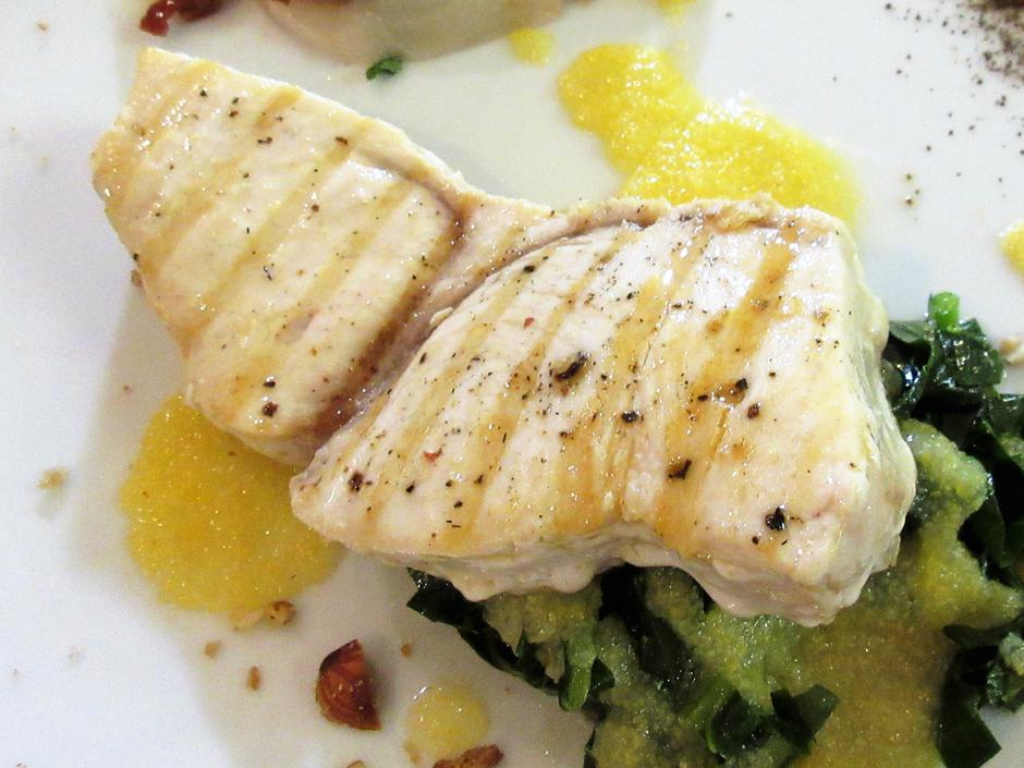 Oko 1 kg debljih fileta velike hame Cromaris ostavite preko noći u marinadi od maslinova ulja u koje ste umiješali sjeckani češnjak i ružmarin. Sutradan ih uvaljajte u krupni papar i sol pa pecite na naglo na vrelim nauljenim gradelama s obje strane, premazujući ribu maslinovim uljem, kratko dok fileti ne uhvate lijepu blijedu kožicu, a iznutra ostanu ružičasti. Poslužite odmah, opet poškropljene maslinovim uljem i s nekoliko kapi limuna, s prilogom po volji. Jelo služeno na jednoj od gozbi, napuljskog podrijetla