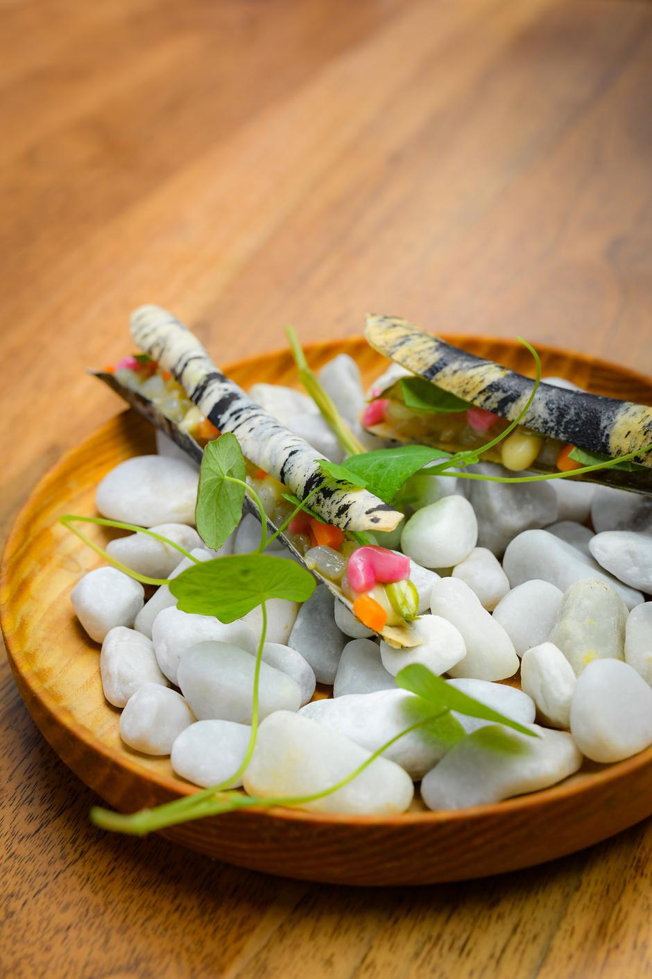– Naša verzija spring rolica drukčija je od onih kakve poznajemo iz azijskih restorana. U hrskavo tijesto ide tartar od bijele ribe, ukiseljena mrkvica, majoneza s rižinim octom, motar koji raste ispod mora u kamenu i cvjetovi ukiseljenog medvjeđeg luka koji su lagano pikantni – priča maštoviti zagrebački chef.