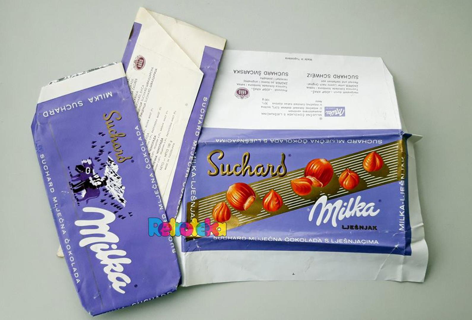 Milku je proizvodio Kraš po Suchard licenci, a na fotografiji u Facebook grupi Retroteka nalaze se vrlo dobro očuvani omoti iz sedamdesetih. Osim toga član ove grupe objavio je i fotografiju pakiranja Toblerone iz osamdesetih godina. Čini se kako se nije puno promijenilo.