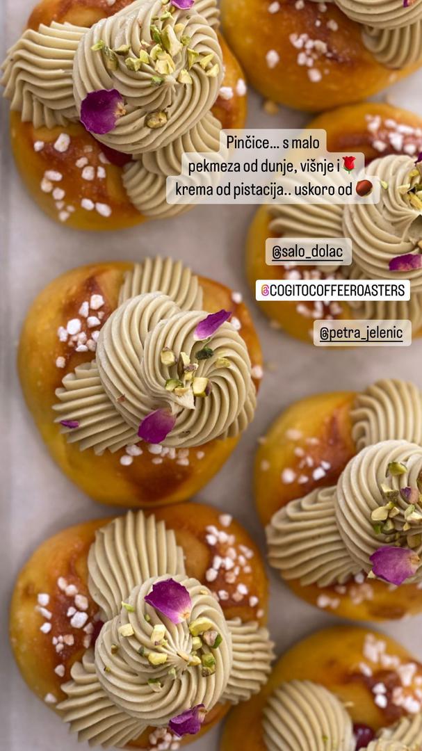 Podsjetimo, iza šarmantnog lokala znakovitog imena 'Salo' stoji uzbudljivi udruženi gastronomski projekt našeg poznatog chefaTvrtka Šakote, slastičarke Petre Jelenić i Matije Belkovića iz Cogita. Petra im se pridružila u posljednji čas i, kako Matija kaže, odmah se sve drastično promijenilo nabolje! Projekt objedinjuje na jednom mjestu pekaru, slastičarnicu, bistro i coffe shop. To znači da u 'Salo' možete doći i kupiti jedan od Tvrtkovih kruhova koji su trenutačno u ponudi ili odabrati neki od kolača Petre Jelenić, a isto tako možete i sjesti, degustirati kruhove, jela, kolače i kavu iz njihove ponude te odabrati svoje favorite. Jedan od njih sigurno će biti Petrina nova 'pinčica' koja izgleda neodoljivo.
