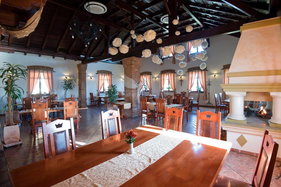 Svoja vina, ali i vina drugih međimurskih vinara, nude i restoranu u kojem se pripremaju brojna tradicionalna jela od namirnica koje se rijetko gdje koriste, poput heljde i prosa. I zasitna su to jela. Na primjer, hladni mesni tajer (tanjur) s domaćim sirevima. Na njemu ćete pronaći suho meso, domaće kobasice, sir z vrhnjem, sir turoš, domaći pečeni kruh na slaninama i slanine. To je jedno od hladnih predjela. Ili namaz od gusje jetre, plata od divljači koja se sastoji od jelenjeg pršuta, kobasica od vepra i jelena, tradicionalno suho meso... Topla predjela? Heljdini žganci preliveni vrhnjem i zapečenom slaninom, trganci s dinstanim zeljem i suhim mesom. Od juha ističu se pretepena juha od štrukli od sira i međimurska pretepena juha sa suhim mesom i crvenom paprikom. Za glavno jelo plemićka puretina, puretina punjena heljdinom kašom i džemom, biftek Zrinski s umakom od gusje jetre i porto vina ili biftek Terbotz s umakom od vrganja, trgancima z vrhnjem i slaninama, njoki od palente, kozjeg sira i bobičastog voća, jelenji but u umaku od korjenastog povrća i crnog vina s domaćim šiškrlinima kao prilogom. Ima nečeg i za vegetarijance, na primjer, domaći njoki s tostiranim orasima, slani štrukli, sirni vangaloci, odnosno žličnjaci od svježeg kravljeg sira i blitve, popečki od tri vrste žitarica – heljde, ječma i prosa. Od slatkog tu su međimurska gibanica sa sladoledom od buče, kuruzna zlevka, domaći sladoled raznih okusa, pa i od buče, ili po međimurski tikve. Novost je heljdin kolač od bijele čokolade s karameliziranom jabukom i kremom od vanilije i bučinog ulja.