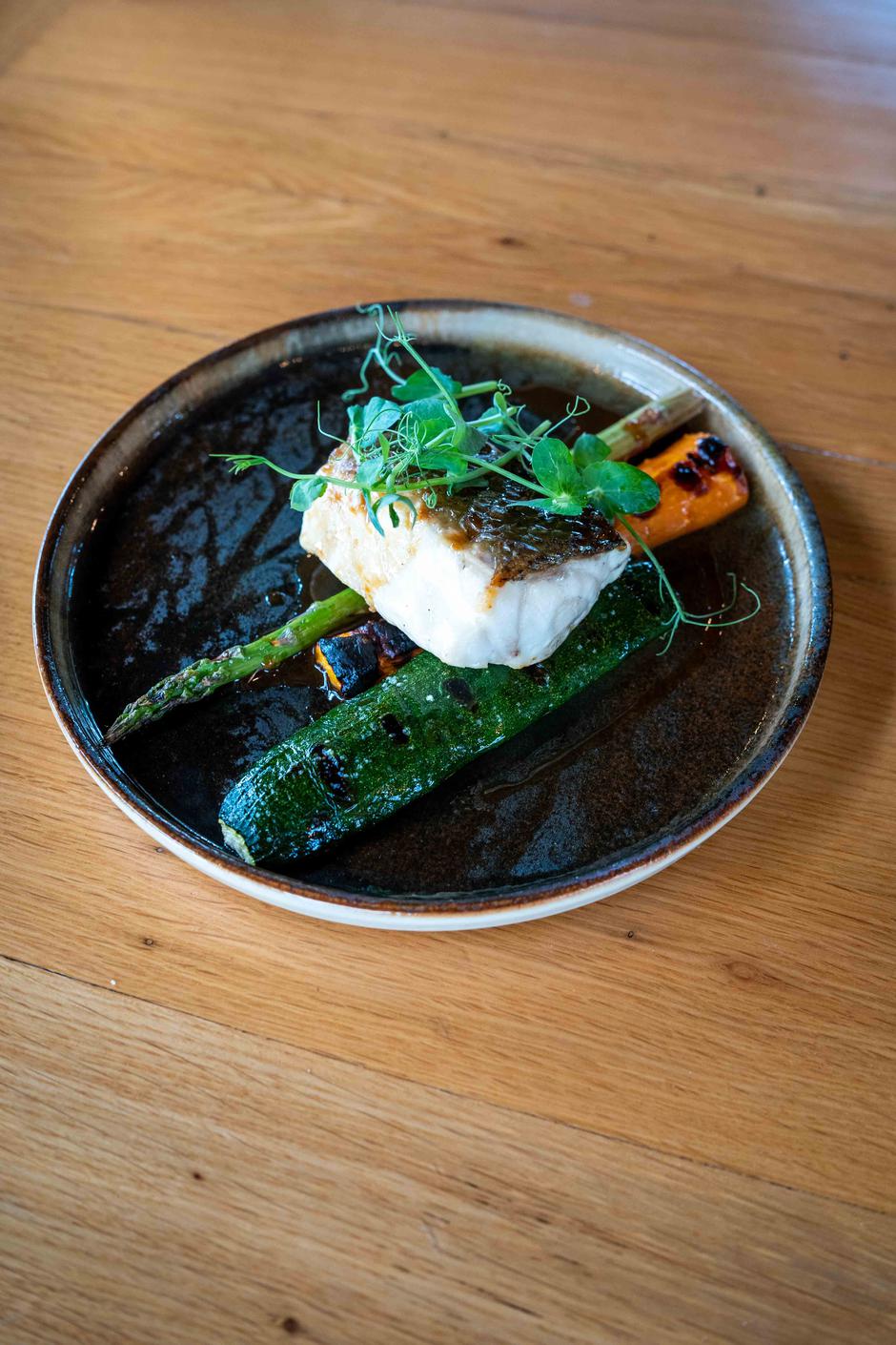 S njima se kao piće dobrodošlice nudio pjenušac Terra Falconis Extra Brut, koji, naravno, dolazi s Plešivice, iz Mladine, koja je od lani u vlasništvu upravo Pago Croatia, a gdje je konzultant baš Milan Budinski. Uvodno osvježenje bio je doista odličan koktel Don Paloma temeljen na tequili Don Julio, uz sok od limete, malo grejpfruta i sode, a čiji je autor Tis Jazbinšek, doista odličan koktel-majstor. Rijetko smo kada popili koktel nakon kojeg bismo rado još jedan, isti takav, pa nam je postalo jasno zašto je ovo jedan od popularnijih koktela u svijetu. Objed je počeo carpacciom od bijele ribe s malo kruške i krutona što je sve zajedno doista davalo ukusan, a doista lagan zalogaj koji neće ometati put sljedećim sljedovima. Taj je carpaccio sparivan s vinom Erdoro Sauvignon Blanc berbe 2023. što je još jedno vino koje dolazi iz Mladine. I onda nas je u drugom slijedu dočekalo doista sjajno iznenađenje. A radilo se o – ćevapu. Ne bilo kakvom, već o Igomatovu ćevapu koji je pohan i poslužen na ukusnom pireu. Osnovno je pitanje, ne samo za našim stolom, bilo ide li ovo i kao klasična “desetka”. Belužić je objasnio kako je jelo nastalo sasvim slučajno, za nekog od njegovih druženja s prijateljima, pri čemu se, kako to već ide, malo i ogladnjelo, a ostalo je tek nešto ćevapa. I evo ga, pred nama na stolu našao se “Će” Surprise. Sljedeći je u Big Green Eggu bio pečeni file brancina s povrćem popečenim u istom “stroju”. Išao je s Erdorovim vinom Blend One berbe 2022. što je kupaža rajnskog rizlinga, sivog pinota i traminca koje se lako nosilo s tanjurom iz svojeg para. Kao glavno jelo poslužen je teleći kotlet s mrkvom, oboje pečeno u Big Green Eggu, čija je keramika razvijana u NASA-i, s čime je išao Erdorov Pinot Gris 2022. Sva ova jela, iako nisu tako najavljivana, uredno bi se uklopila u bilo koji naš vrhunski restoran koji aspirira vrhunskoj kuhinji, a poglavito kada je riječ o desertu. Napravio ga je francuski pastry chef na radu u Ljubljani Dimitri Chapelle.
