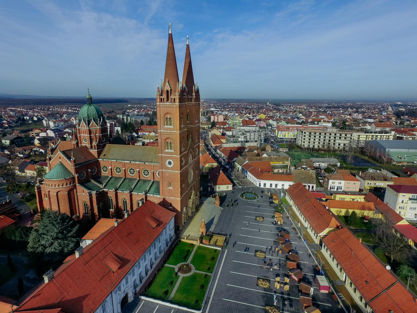 I kad izdaleka, prilazeći Đakovu, osjetite miris zemlje koja kruhom hrani, pa zalelujaju pred vama zelene trave i žuta žita, kad vam se poput putokaza ukažu dva žarko crvena tornja, znat ćete da ste na pravom putu, putu u srce, srce Slavonije - Đakovo!