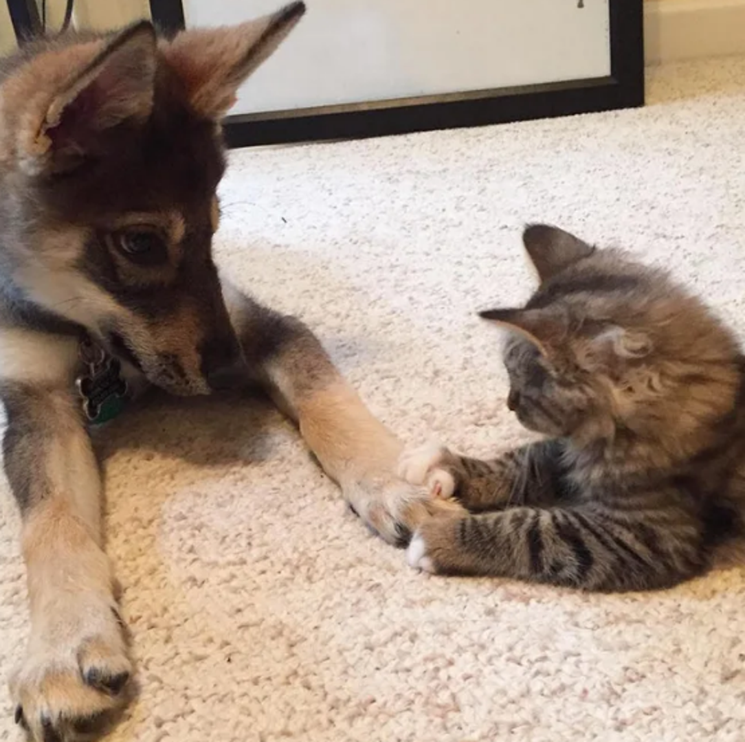 Raven je upoznao četiri mačke koje su bile tek nekoliko tjedana stare, a odabrao je baš Woodhouse. Odmah su se 'kliknuli' kako kaže vlasnica i od tada su nerazdvojni. Još jedna preslatka stvar je da su im rođendani tek nekoliko tjedana razlike.