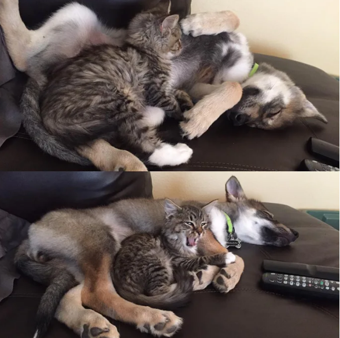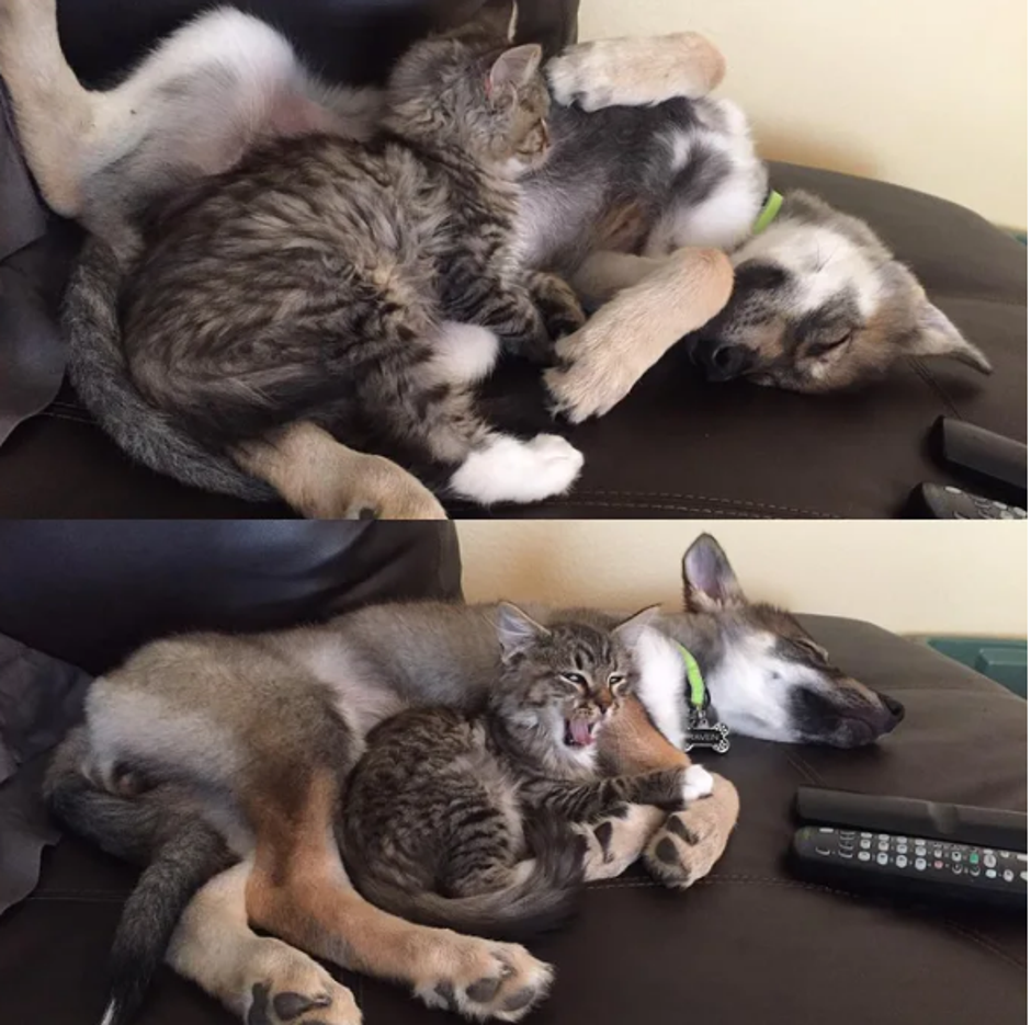 Najviše vole provoditi dane ležeći zajedno na sofi. "Uvijek sam željela psa i mačku za kućne ljubimce koji će odrasti zajedno. To mi je nekako bio životni cilj. Savršeni su zajedno, iako se sada više ne maze kao kad su bili skroz mali."