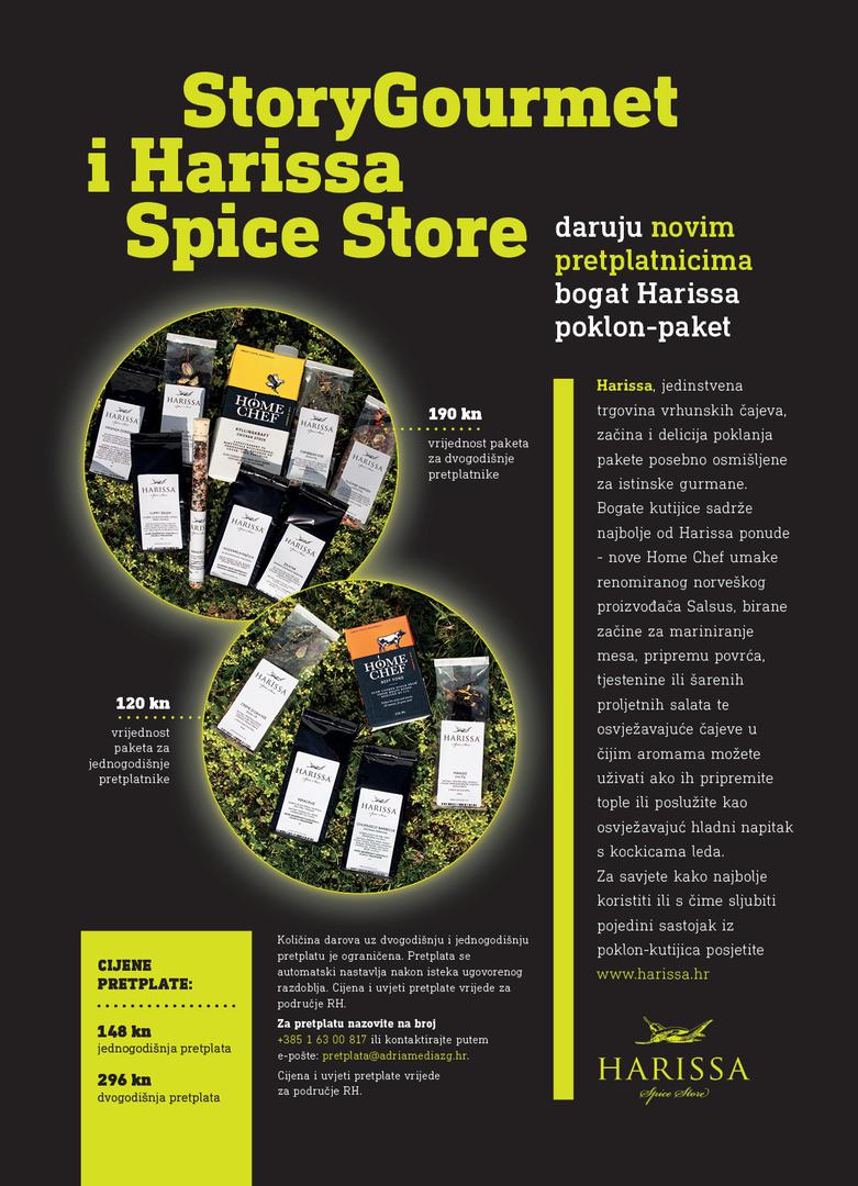 StoryGourmet i Harissa Spice Store daruju novim pretplatnicima bogat Harissa poklon- paket posebno osmišljen za istinske germane, a za savjete kako najbolje koristiti ili s čime sljubiti pojedini sastojak iz poklon – kutijica posjetite www.harissa.hr
