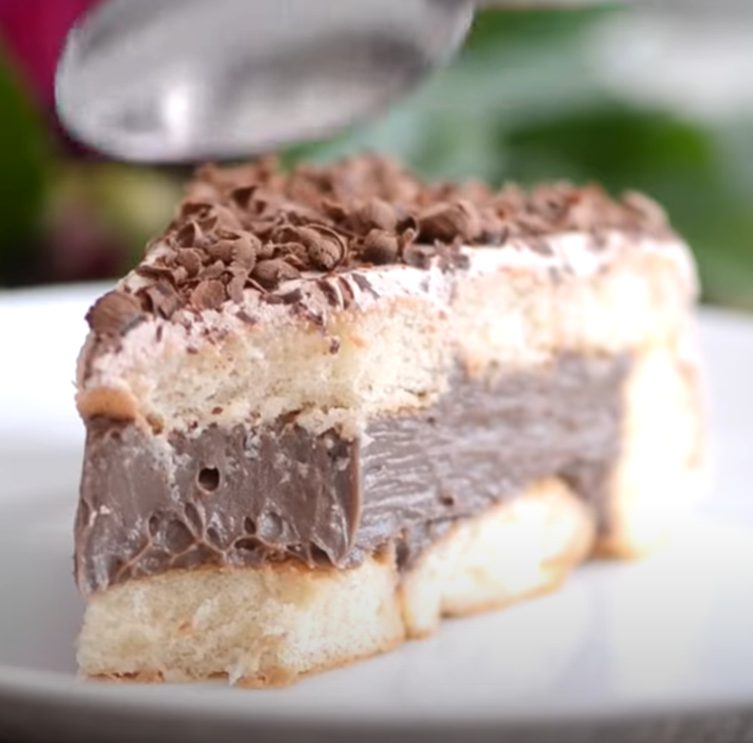 Za kremu u lonac dodajte 2 jaja, 80 grama šećera i 1 vanilin šećer. Sve izmiksajte. Dodajte 5 žlica brašna i 2 žlice mlijeka. I to izmiksajte. Dodajte preostalo mlijeko te kuhajte na laganoj vatri miješajući da se ne stvore grudice. Kada se krema zgusne, dodajte 100 grama čokolade. Miješajte dok se ne otopi. Kremu sklonite sa strane i dodajte 1 šlag u prahu pa izmiješajte. Potom dodajte 200 grama maslaca. Sastojke miksajte dok se ne povežu. U kalup promjera 26 centimetara stavite prozirnu foliju i slažite piškote koje ste prije toga namočili u mlijeko. Potom izlijte kremu, a na nju stavite još jedan red piškota. Prekrijte tortu folijom i ostavite preko noći u hladnjaku. Ujutro je premažite tučnim slatkim vrhnjem, pospite mrvicama ili mljevenim orasima.
