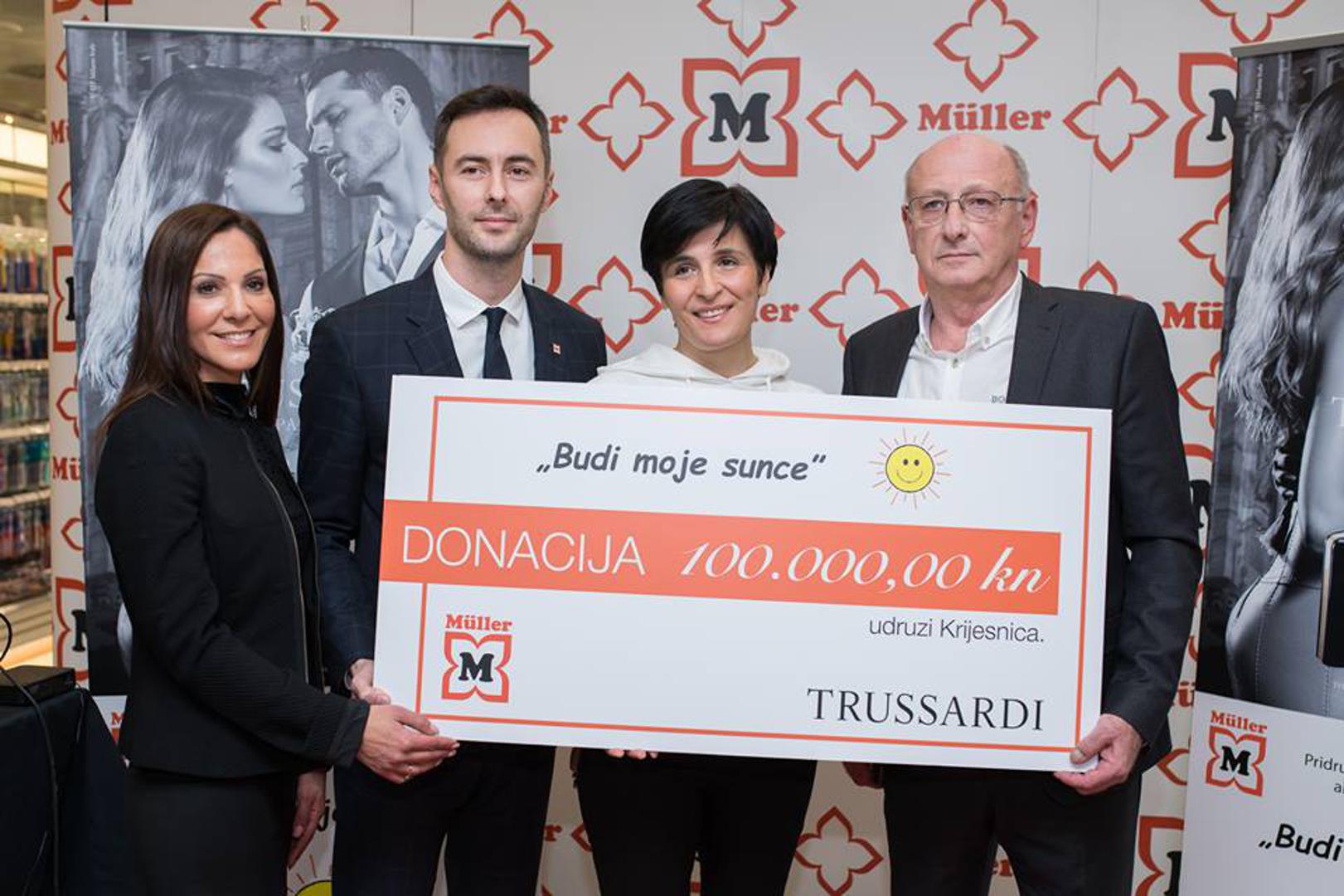 Donacija je prikupljena u sklopu akcije “Budi moje sunce” , a dio od prodaje parfema Trussardi Uomo i Trussardi Donna bio je namijenjen udruzi koju je uručio Arsim Aliu - voditelj prodaje Mullera za Hrvatsku i Austriju.