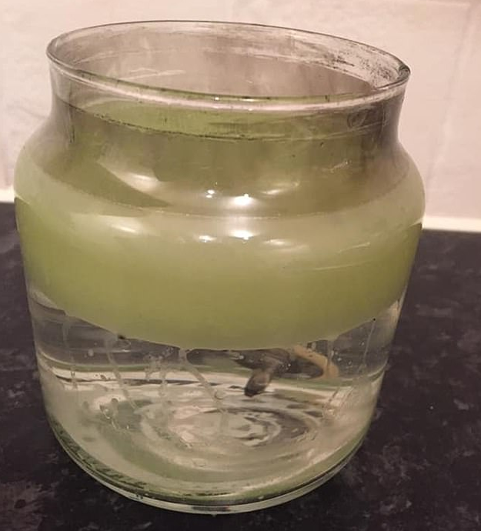 Naime, u staklenku sa svijećom je ulila toplu vodu kako bi dio koji je ostao na dnu mogla izvaditi i staviti u novu posudu. Upravo to joj je i uspjelo, jer se svijeća otopila i podignula na površinu staklenke.