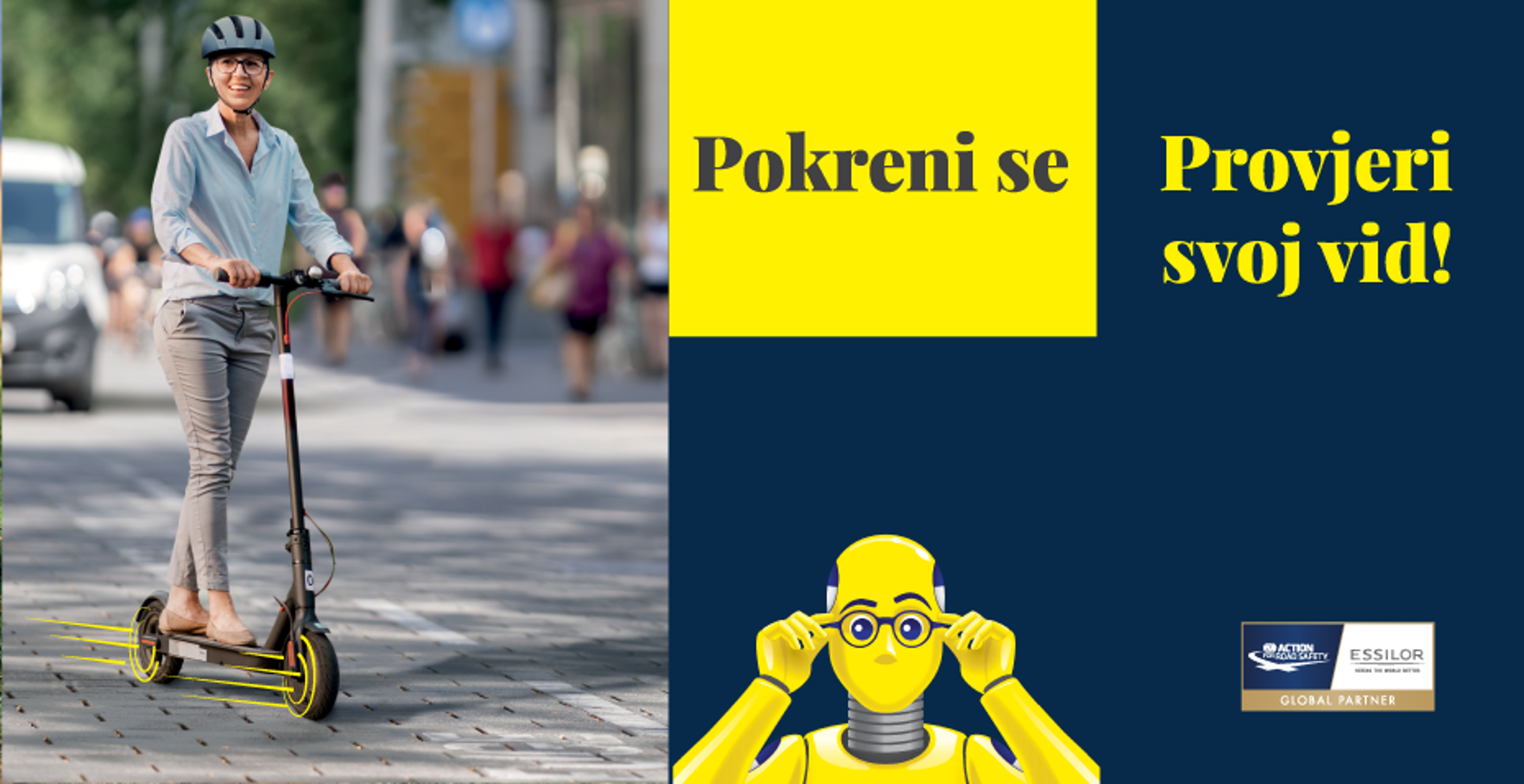 Osvještavanje o važnosti dobrog vida u svakodnevnom životu od iznimne je važnosti, što se posebno ističe tijekom listopada, kada se obilježava Svjetski dan vida. Ove godine ga obilježavamo 8. listopada, a iz Essilora, kao vodećeg proizvođača optičkih rješenja za dobar vid koji globalno aktivno sudjeluju u obilježavanju Svjetskog dana vida, poručuju „Pokreni se. Provjeri svoj vid.“ Znate li da čak 1 od 5 vozača ne vidi dobro cestu? Važan faktor sigurnosti u prometu je i dobar vid. Pokrenimo se, ponašajmo se odgovorno! Redoviti pregledi vida i adekvatna korekcija ključan su preduvjet za sigurnost u prometu.