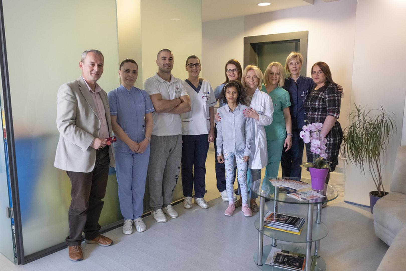 U DRUŠTVU SA SVOJIM DJELATNICIMA I DJEVOJČICOM IZ ALBANIJE KOJOJ JE IZLIJEČEN TEŠKI DEFORMITET KRALJEŽNICE(PRIVATNI ALBUM)