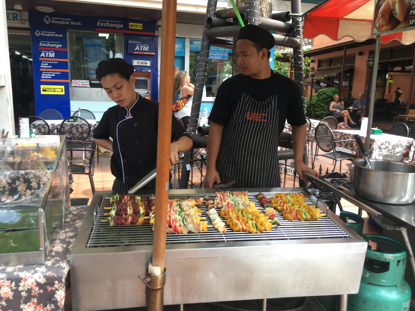 No Tajlanđani rade i nama dobro poznate roštilje, pečene piliće, ribu s gradela, no to je ipak bolje u našim krajevima. Cijene dobre ribe, lignji i golemih kozica u restoranima mnogo su podnošljivije nego u Hrvatskoj i doista si naš turist može priuštiti malo bakanalija. No, okusu divnih morskih stvorenja ipak nedostaje temeljni sastojak mediteranske kuhinje – maslinovo ulje. Malo je teže priuštiti si bocu vina koja uglavnom uvoze iz Australije, jer Tajlanđani su pivska nacija. Imaju nekoliko svojih solidnih lagera koji koštaju kao i kod nas, iako ćete teško vidjeti pripitog Tajlanđanina. U Tajlandu su omamljeni mahom stranci, domaći ljudi su skloniji tome da češće pomalo pojedu, popiju pokoji sok od svježeg manga i malo prilegnu.