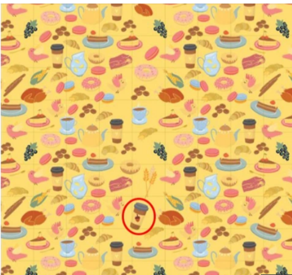 Zadatak je među svim ovim crtežima poput kolača, grožđa i sličnih pronaći žir!