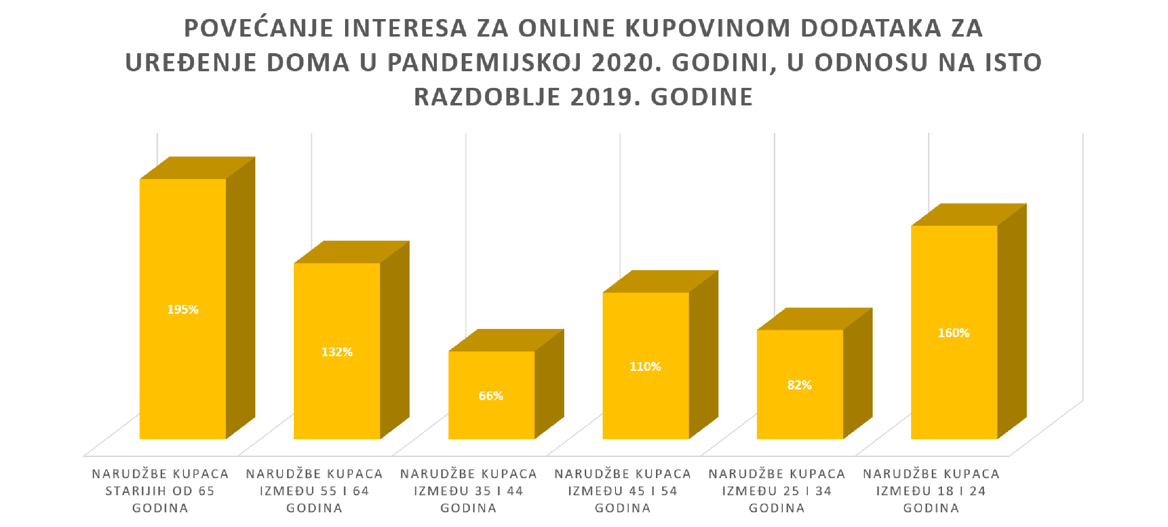 Svim tržištima je zajedničko da su najveći broj transakcija, od ukupnog broja narudžbi registriranih u analiziranom razdoblju, ostvarili kupci u dobi od 25 do 54 godine, s udjelom od 69,10 %. Najznačajnija promjena odnosi se na sve veći interes za internetsku kupnju među osobama starijima od 55 godina, od čega je najizraženiji rast transakcija od čak 195 % zabilježen u dobnoj kategoriji onih starijih od 65 godina.