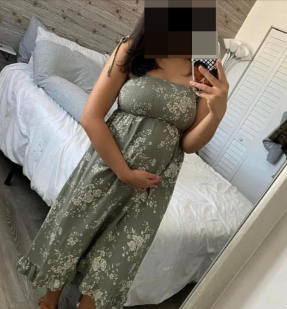 Profilna Tinder fotografija tako pokazuje trudnu brinetu u dugoj zelenoj haljini koja jednu ruku drži preko bebe. Napisala je i da joj je ime Andrea, te da ima 23 godine i da joj je brak 'nekako dosadan'.