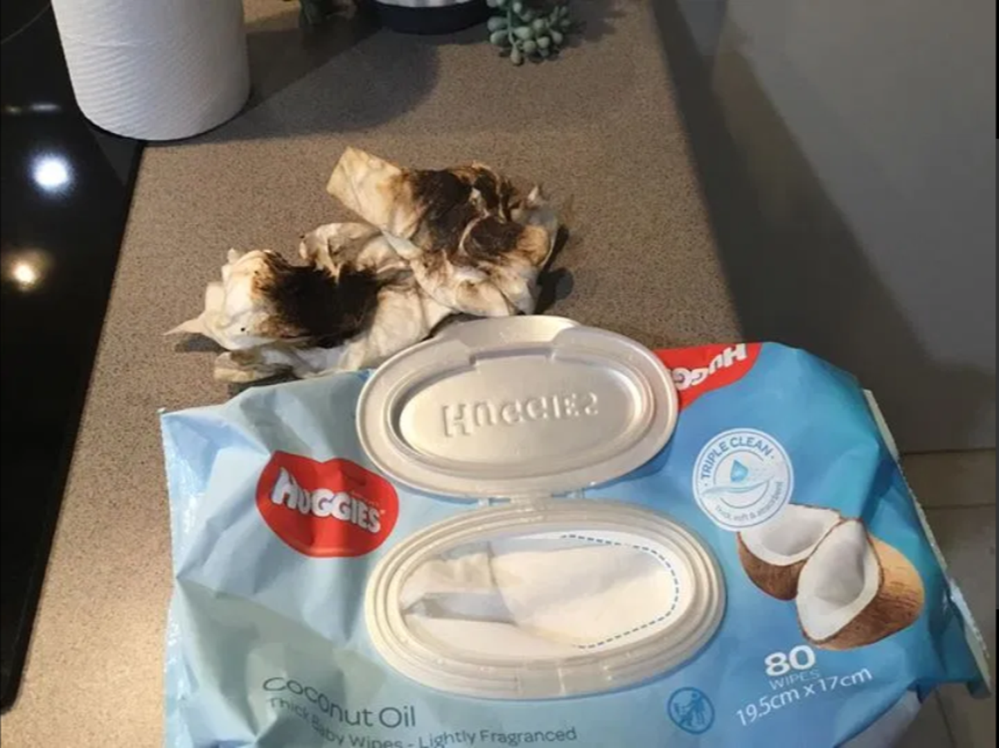 Svoje rezultate podijelila je i u Facebook grupi za čišćenje napisavši: ‘Upravi sam napravila pečenu janjetinu u pećnici i odlučila sam iskoristiti dječje vlažne maramice kako bi se riješila nakupina masnoće prije samog čišćenja. Ne mogu vjerovati koliko su odlični rezultati. Nema više sredstva za čišćenje nakon ovih maramica.’ Uz to podijelila je i fotografije maramica koje su bile u potpunosti crne i pune masnoće koju je očistila iz pećnice.