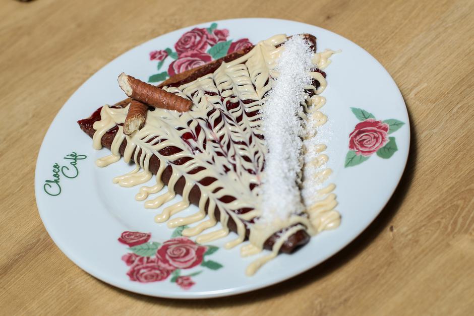 – Budući da nismo klasična palačinkarnica, trudimo se svojim gostima ponuditi proizvode koji nisu usko vezani za palačinke. Tako u ponudi imamo i burger, taquitose s piletinom i pancetom, razne salate i slično. Choco burger nije čokoladni, kako se na prvu pomisao čini, ali bez obzira na to vrlo je popularan. U nj ide pljeskavica od miješanog mesa (junetina + svinjetina) koja u sebi sadrži tri vrste sira, zelenu salatu, rajčicu te hambi-umak – govori Ana Zorotović.