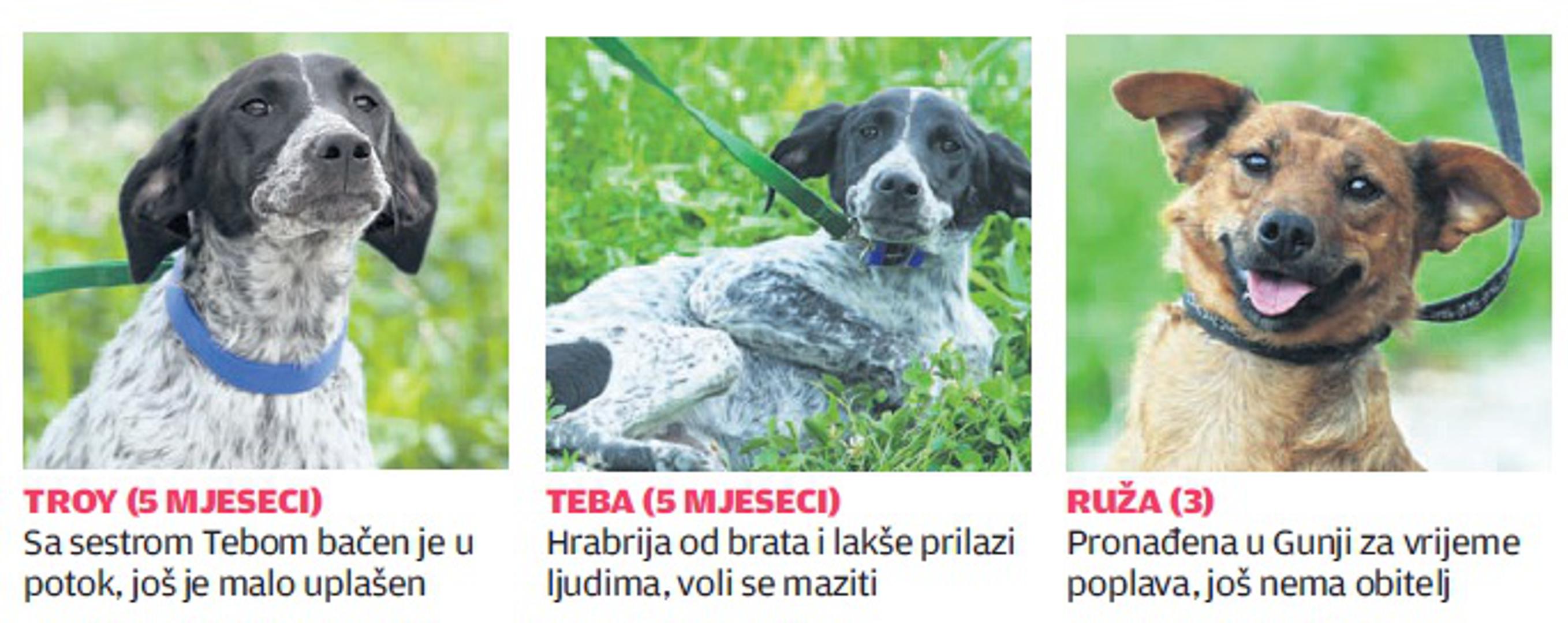 – Ljudi pse, ali i mačke ostavljaju pred vratima udruge, jednostavno ih svežu i ostave, nerijetko uzmu psa pa ga ponovno, nakon nekog vremena, vrate, a rijetko se udome stariji psi, svi radije uzimaju štence – potvrđuje i Zorica Juričić iz Noine arke pokušavajući iz kaveza namamiti Troya i Tebu, brata i sestru koji su spašeni nakon što ih je netko bacio u potok. Još na prvu ne vjeruju u potpunosti ljudima, ali kad se opuste, kaže Juričić, kao i svi psi, čovjeku postaju najbolji prijatelji.