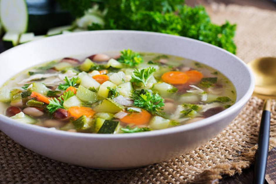 Priprema: Sve povrće izrežemo na kocke i pržimo na vrelom ulju dok porumeni. Dodamo toplu vodu i kuhamo 15 minuta. Vodu začinimo i dodamo brašno razmućeno s vrhnjem za kuhanje. Pustimo da provre. Isključimo i poklopimo da malo odstoji. Prije posluživanja, pospemo peršinom.