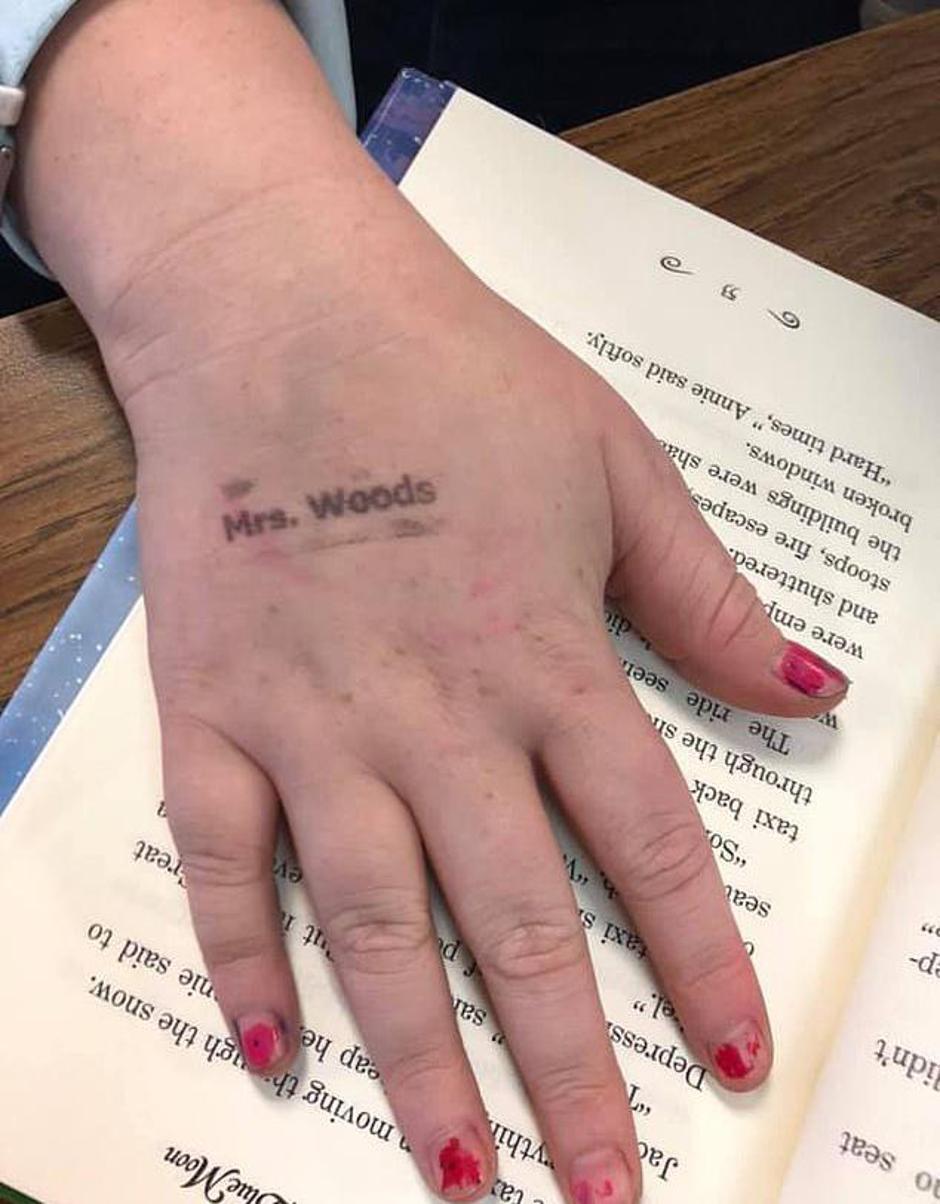 Shauna Woods, 29, ima posebno napravljen pečat na kojem piše 'Ms. Woods', kojeg inače koristi za označavanje svojih knjiga u učionici, ali prošlog tjedna počela je stavljati pečate na ruku djece. Djeca koja do kraja dana dovoljno puta operu ruku i uspiju skinuti svu boju, dobiju nagradu.